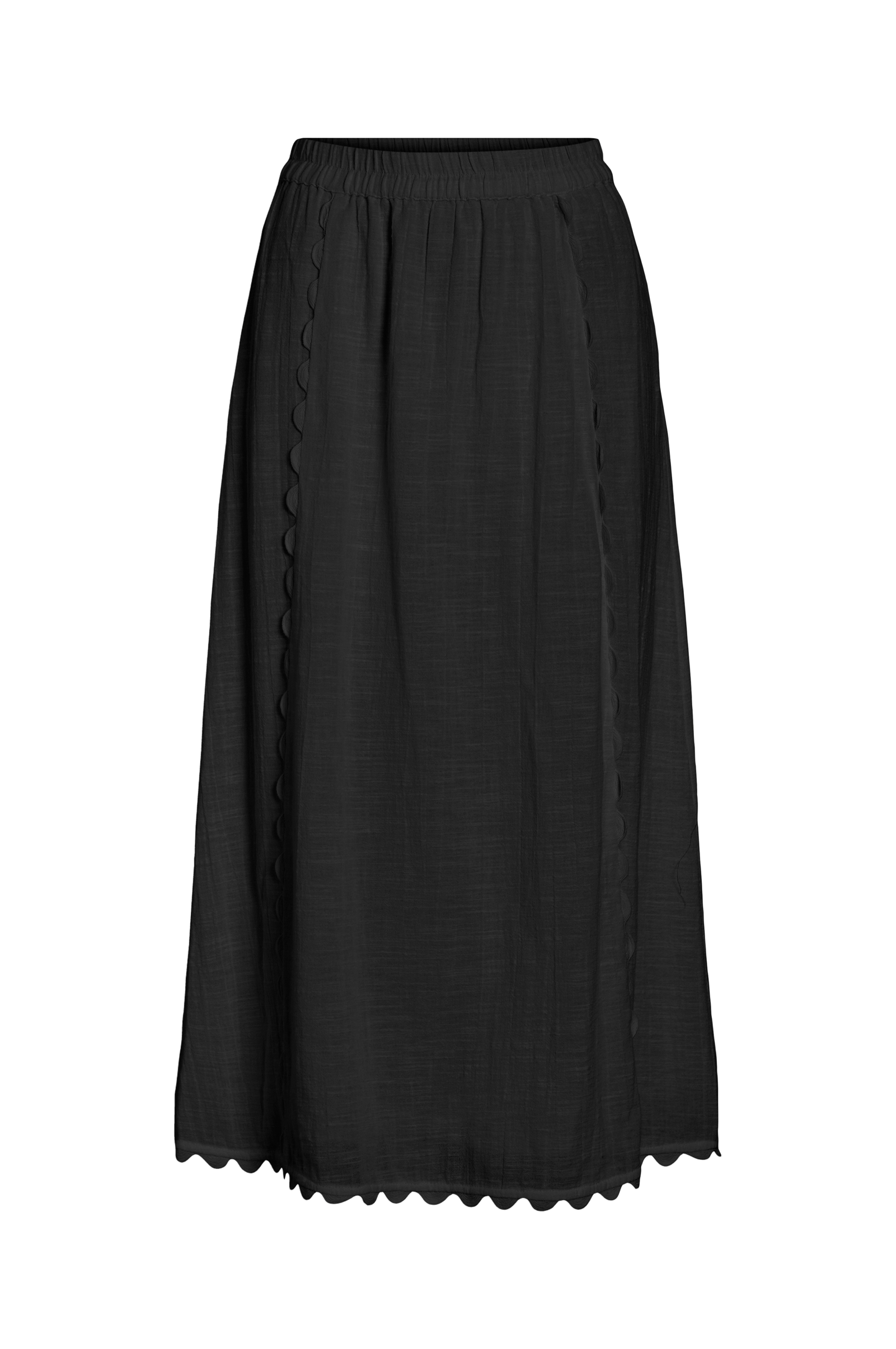 • Midi skjørt i slub bomull• Innvendig gummistrikk ved midjen• Bølget, brodert applique foran og i nedre kant• Underskjørt i jersey• Lengde: 87 cm i størrelse 36