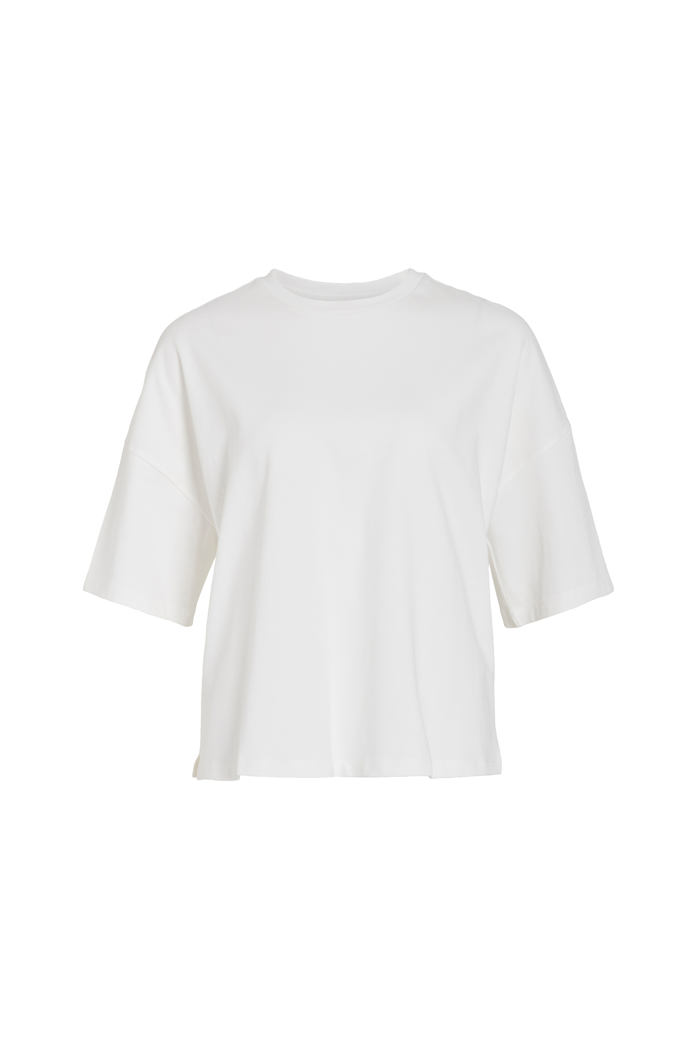 • T-skjorte i bomull med løs passform• Rund hals• Utringede skuldre• Skjær nede i sidene