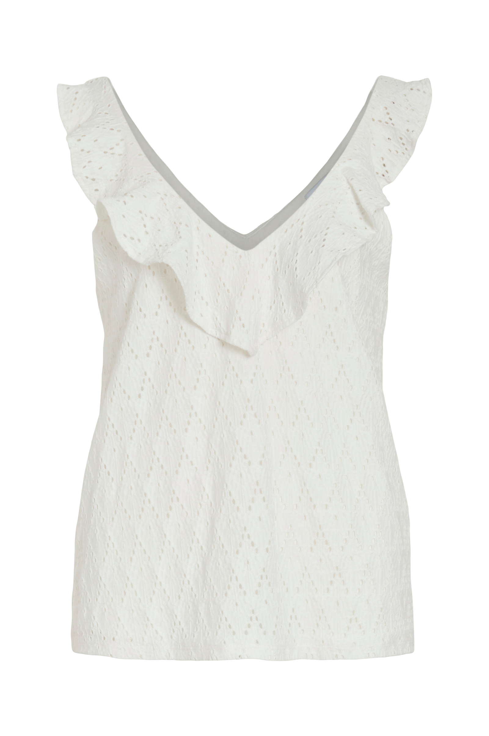 • Ermløs topp med hullmønster• V-formet hals med volang rundt• Trikotfôr