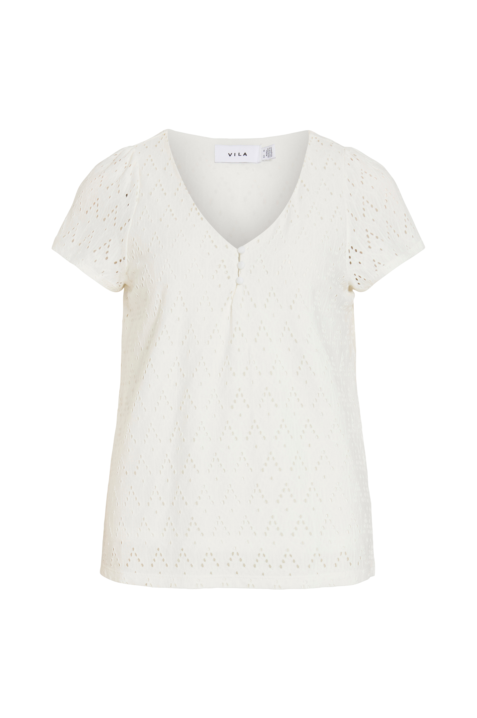 • Topp i hullmønstret jersey• V-hals snitt med kledde knapper• Kort erme• Trikotfôr