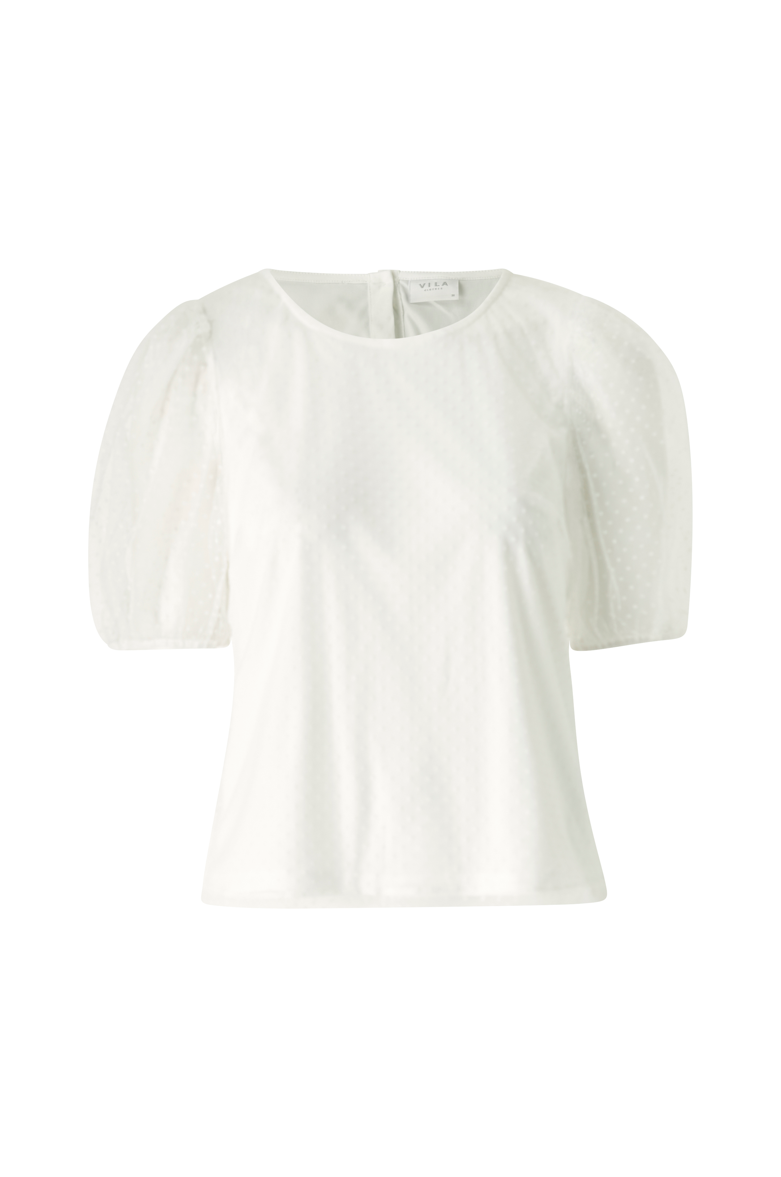 Topp viDanna 2/4 Top fra Vila i transparent mesh med strukturprikker. Korte puffermer og knapper langs hele ryggen. Fôret.