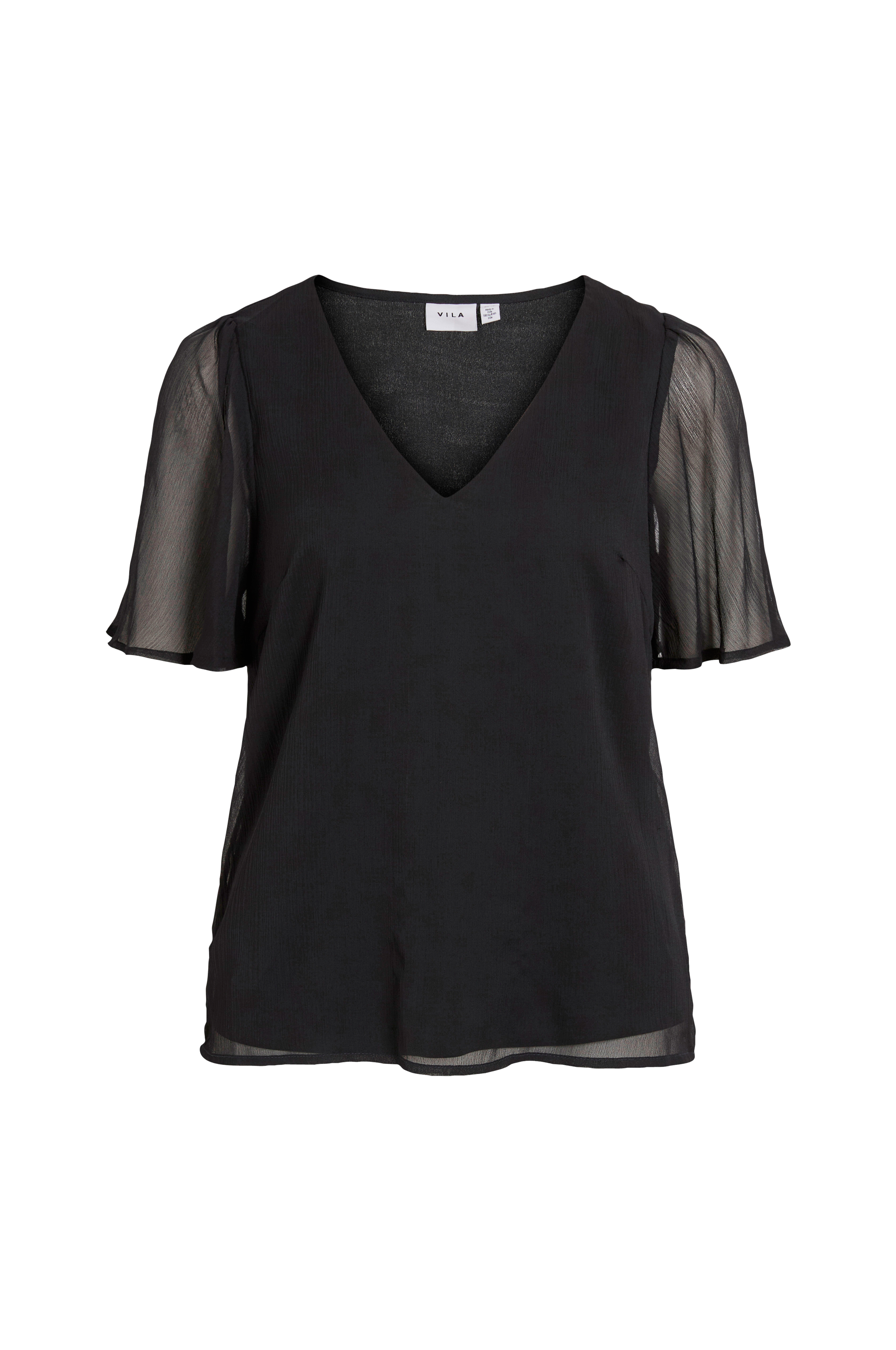 • Fôret topp i lett skrukket materiale• Korte, ufôrete ermer• V-formet hals