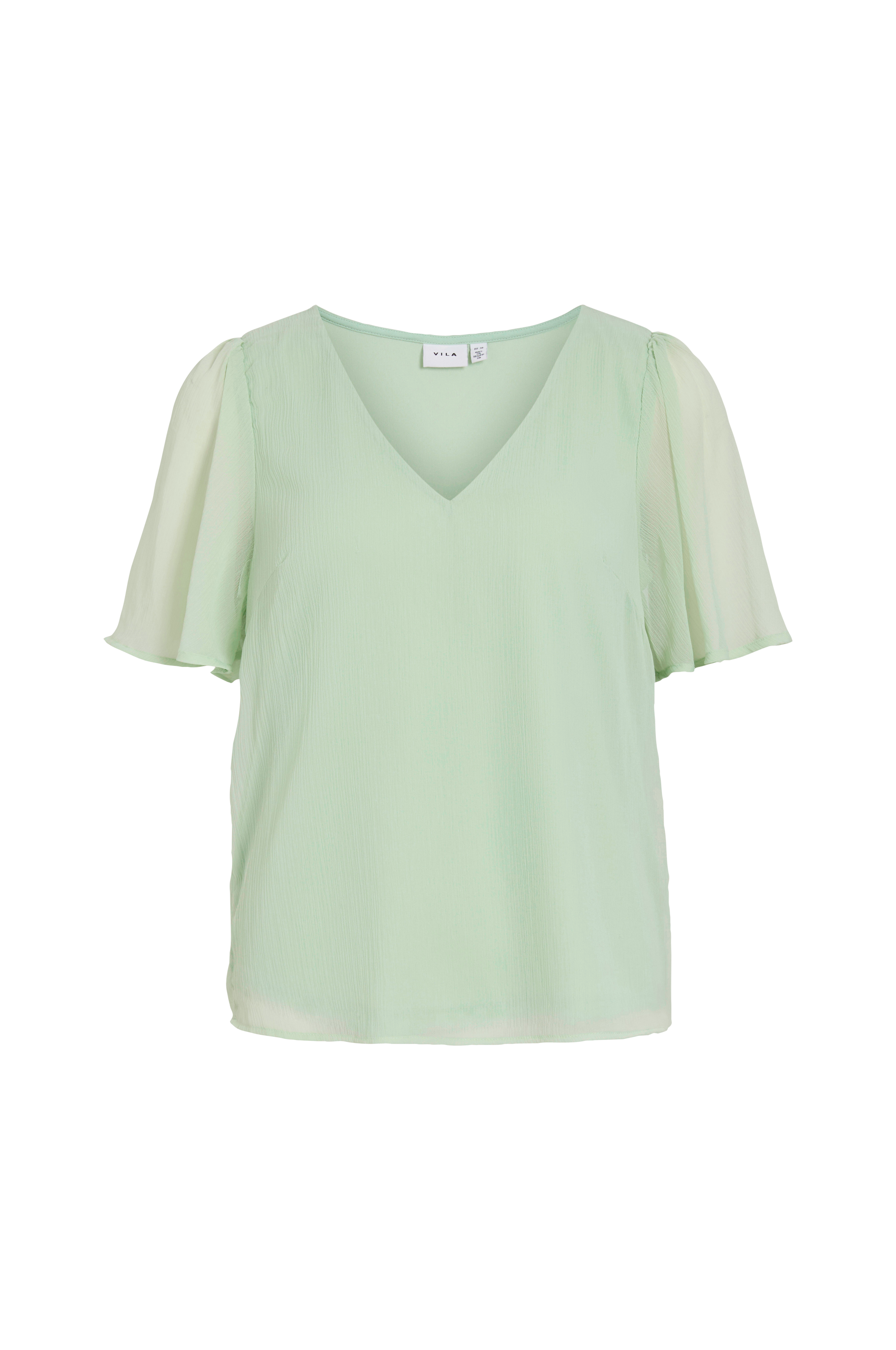 • Fôret topp i lett skrukket materiale• Korte, ufôrete ermer• V-formet hals