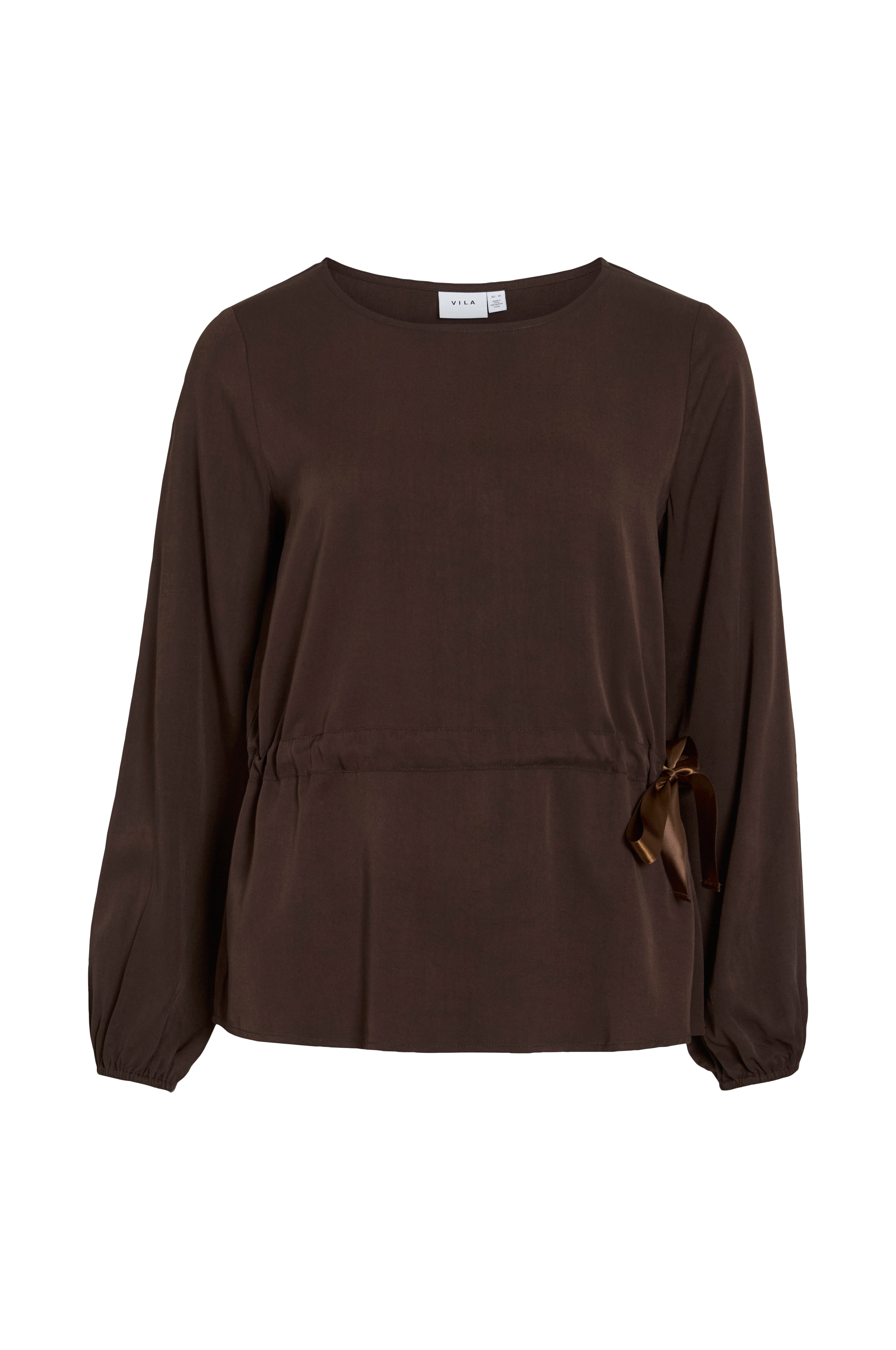 • Topp i viskose• Rund hals• Lange ermer• Gummistrikk i ermeslutten• Snøring ved midjen• Normal passform