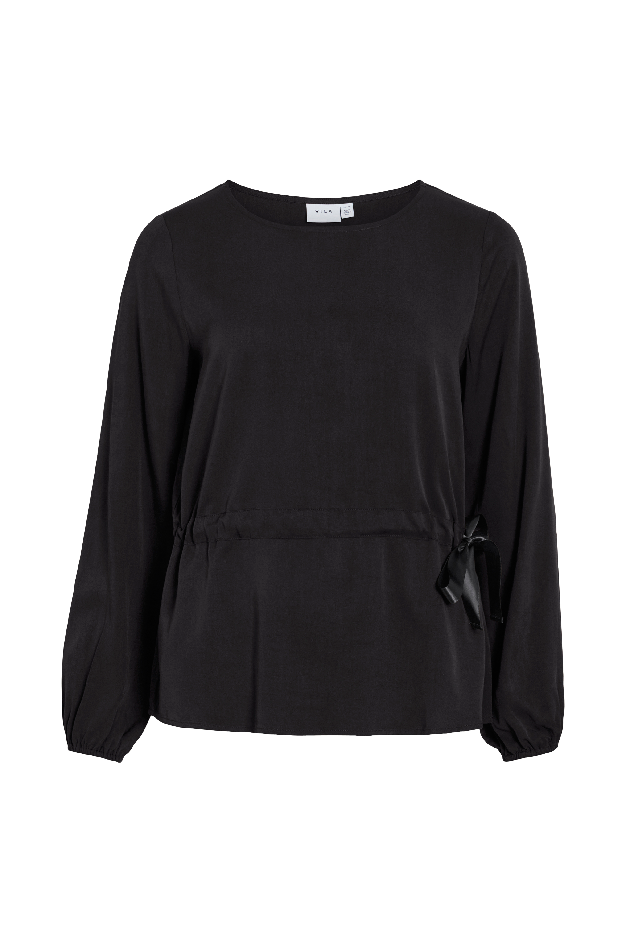 • Topp i viskose• Rund hals• Lange ermer• Gummistrikk i ermeslutten• Snøring ved midjen• Normal passform