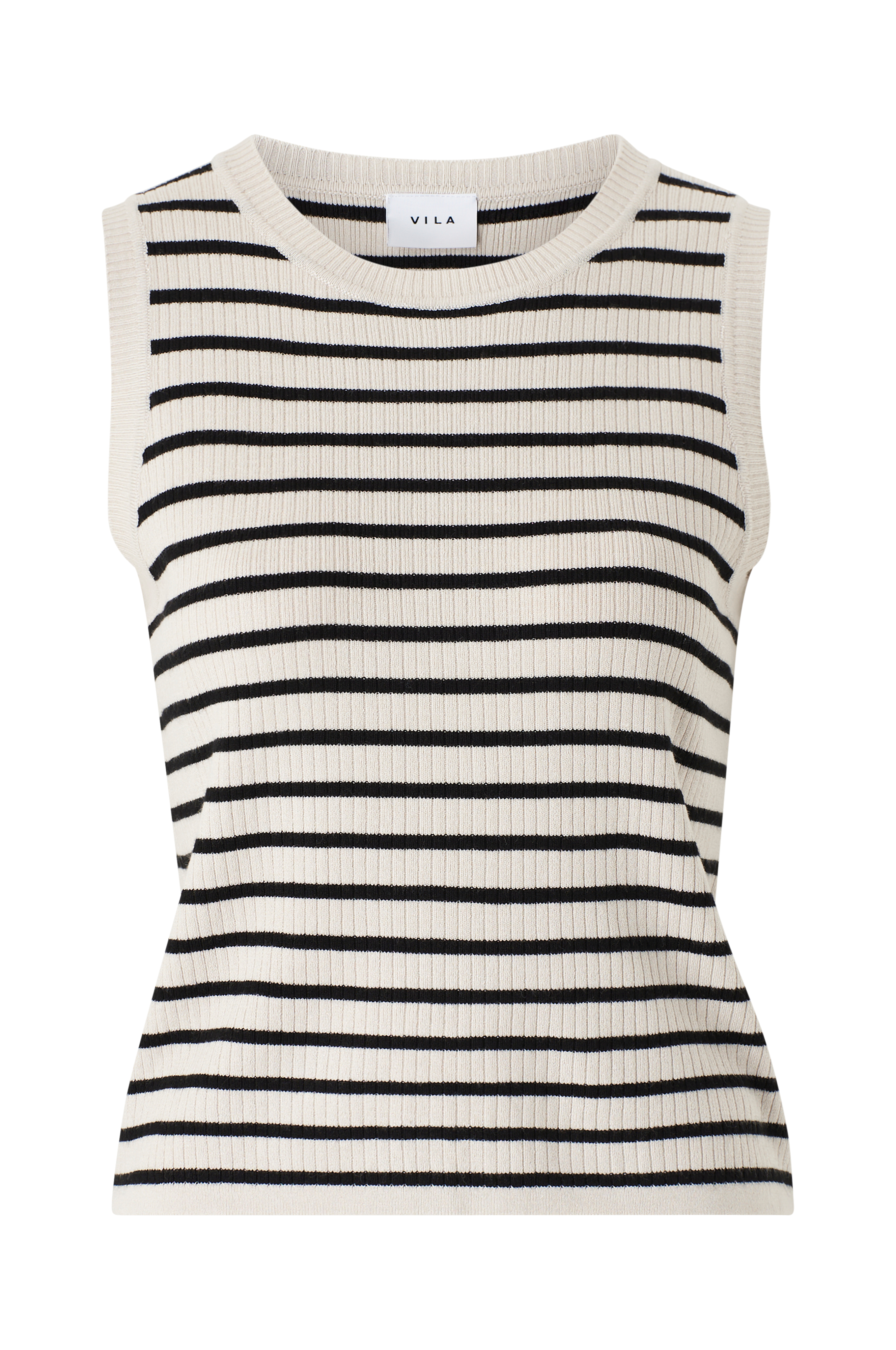• Ermløs, ribbestrikket modell• Rund hals