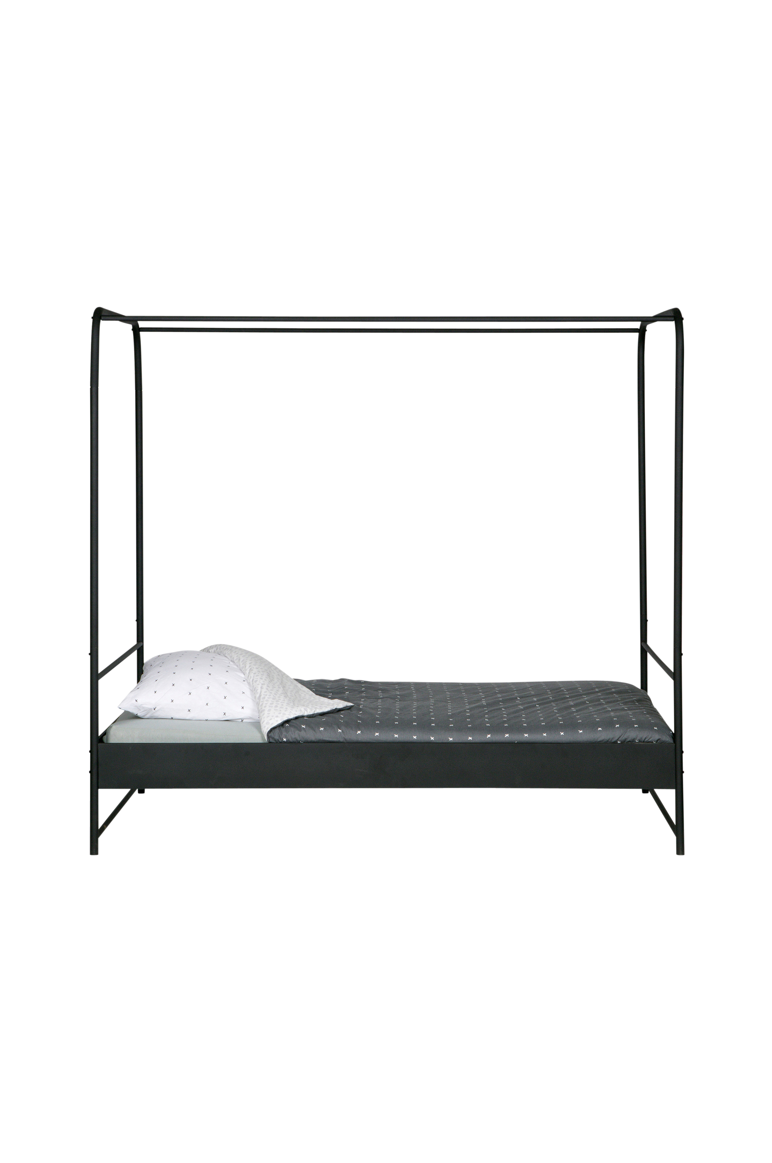 Rammen er av pulverlakkert stål. Lamellene er av metall. Sengen finnes i to forskjellige størrelser (hxbxd): 190x206x95 cm (madrass 90x200 cm) og 190x206x125 cm (madrass 120x200 cm). Sengen leveres uten madrass. Benhøyden er 23 cm, og tykkelsen på sengekanten er 16 cm. Høyde fra gulv til bunn er 39 cm.