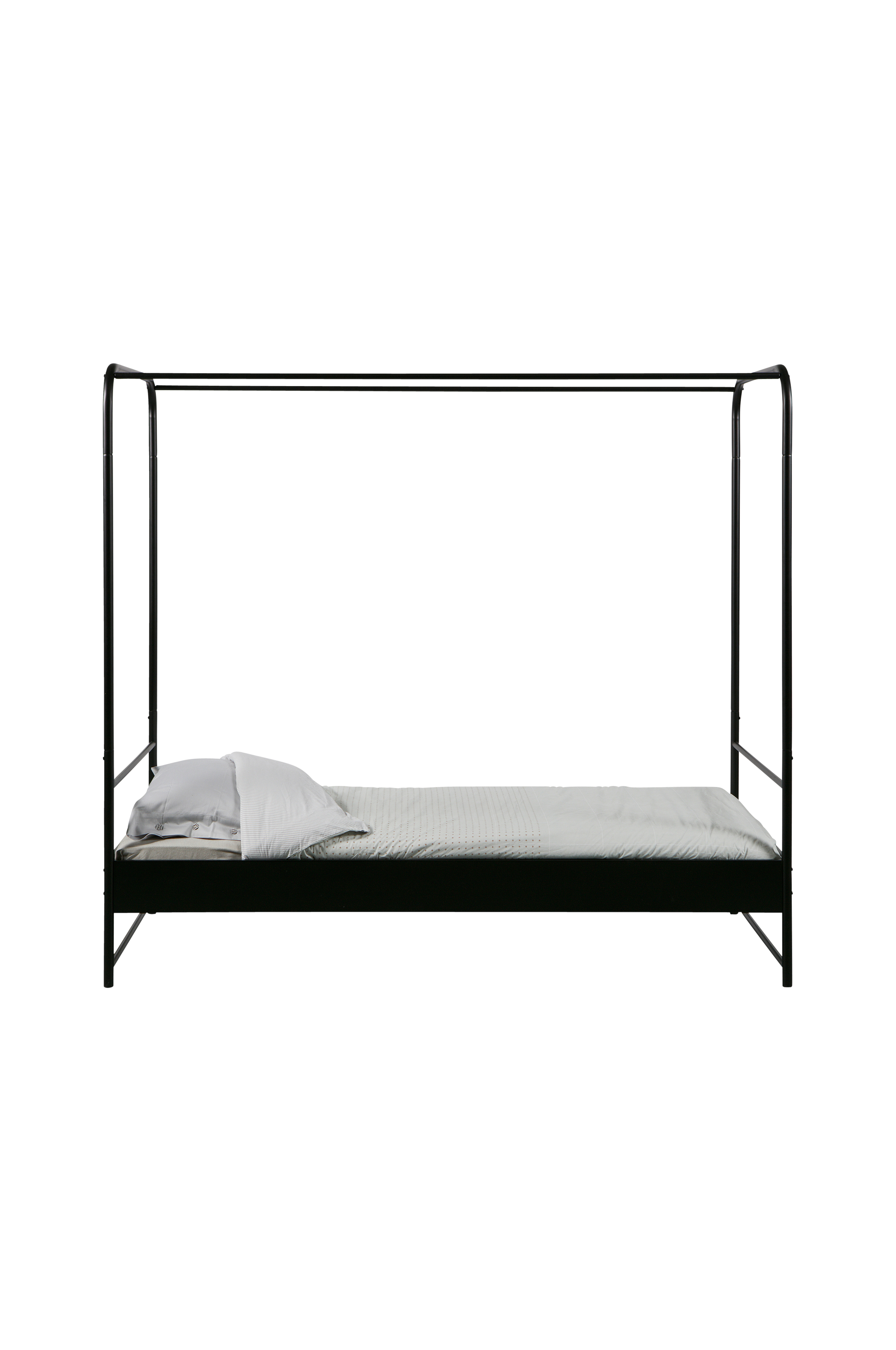 Rammen er av pulverlakkert stål. Lamellene er av metall. Sengen finnes i to forskjellige størrelser (hxbxd): 190x206x95 cm (madrass 90x200 cm) og 190x206x125 cm (madrass 120x200 cm). Sengen leveres uten madrass. Benhøyden er 23 cm, og tykkelsen på sengekanten er 16 cm. Høyde fra gulv til bunn er 39 cm.