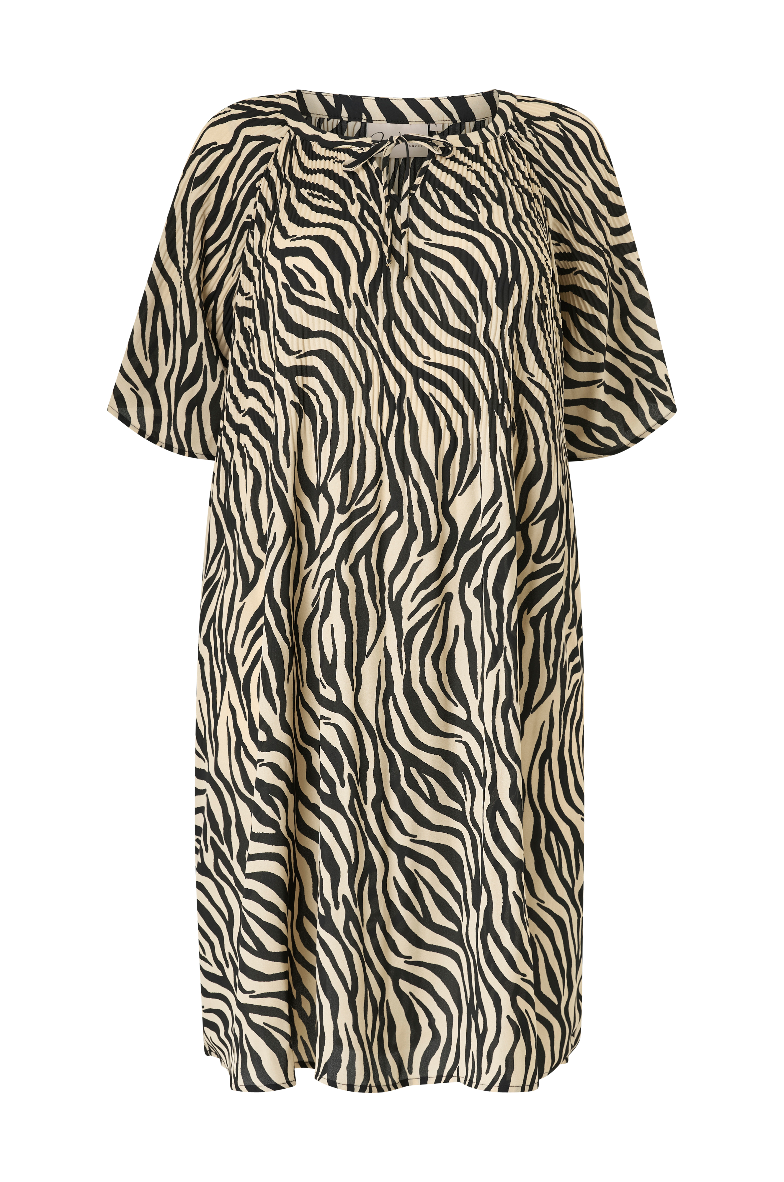 • Luftig, mønstret kjole• Stoff med plissé på toppen• Rund hals• Skjær med knytebånd foran• Korte ermer• Pluss-størrelser• Lengde: 114 cm i størrelse S