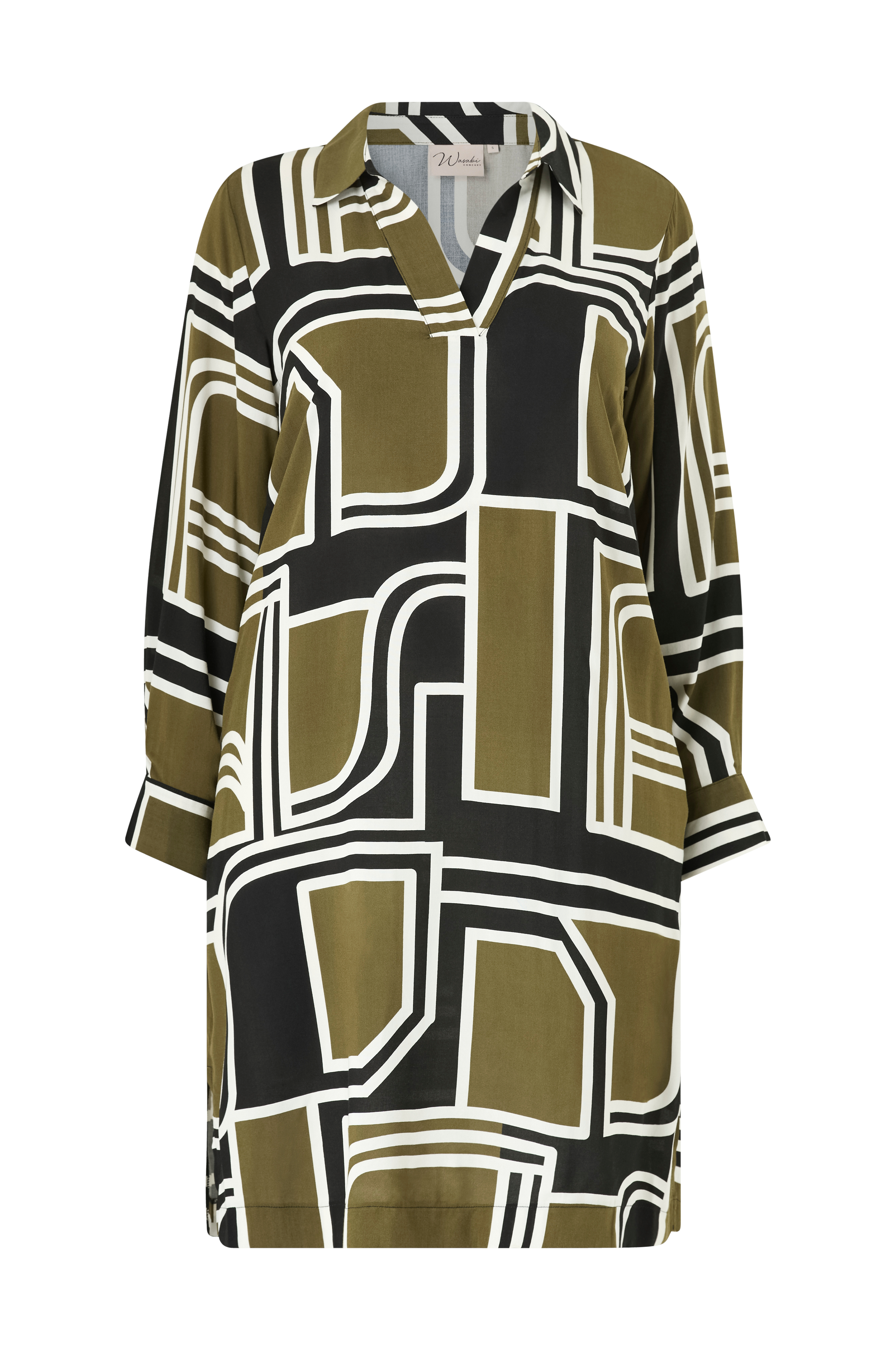• Tynn tunika i viskose• Krage• V-hals snitt• Lange ermer• Mansjetter i ermeslutten• Splitt nede i sidene• Pluss-størrelser• Lengde: 113 cm i størrelse S