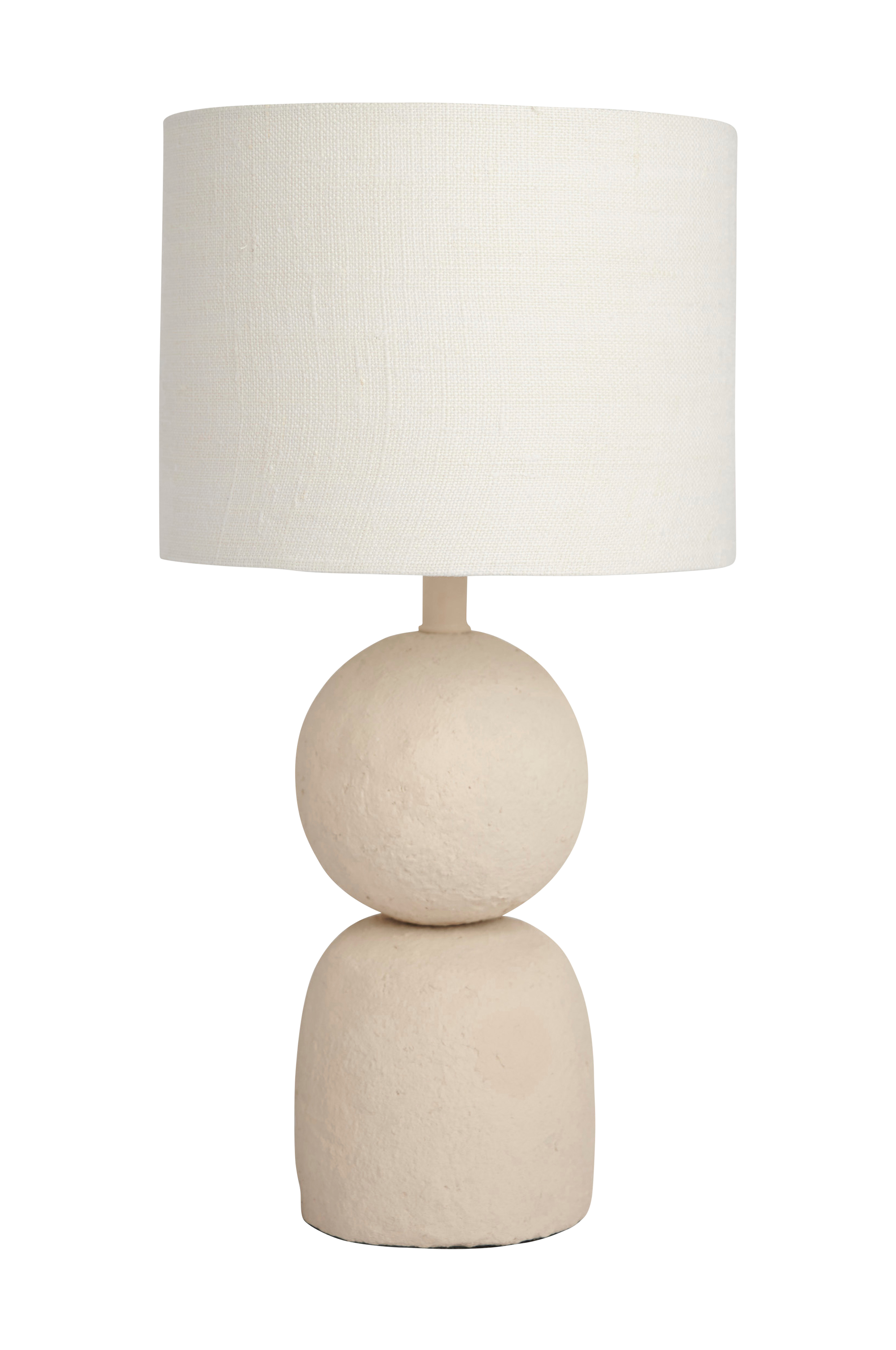 Cia er en liten og lettplassert bordlampe som kommer i en lys og naturlig fargeskala. Den organisk formede foten er produsert i metall med taktil overflate av pappmasje. Skjermen er av lin. Lyspære er ikke inkludert.