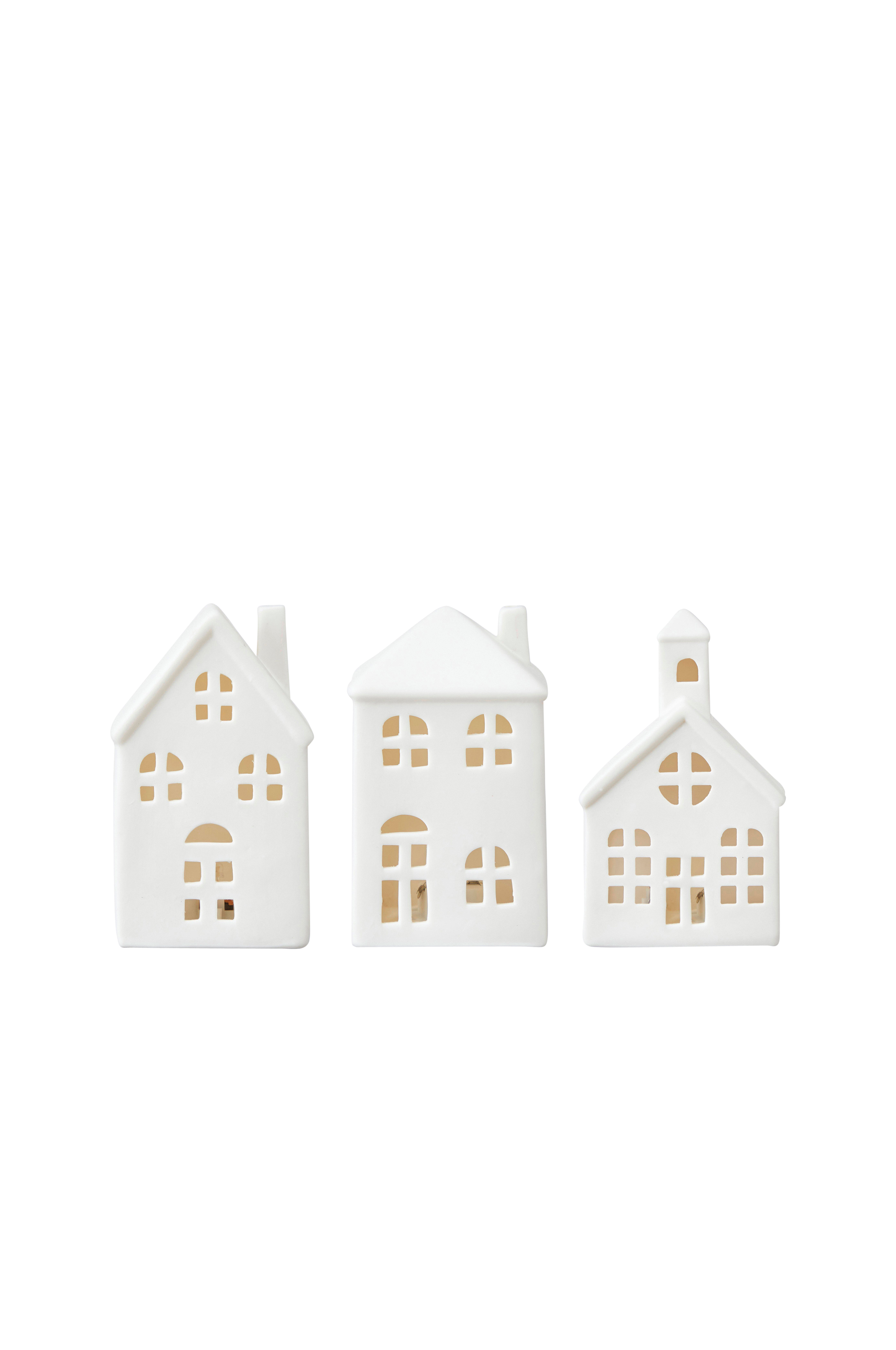 Hus m. LED i Boks av keramikk. Mål 11X21, 11X21, 9X16CM.