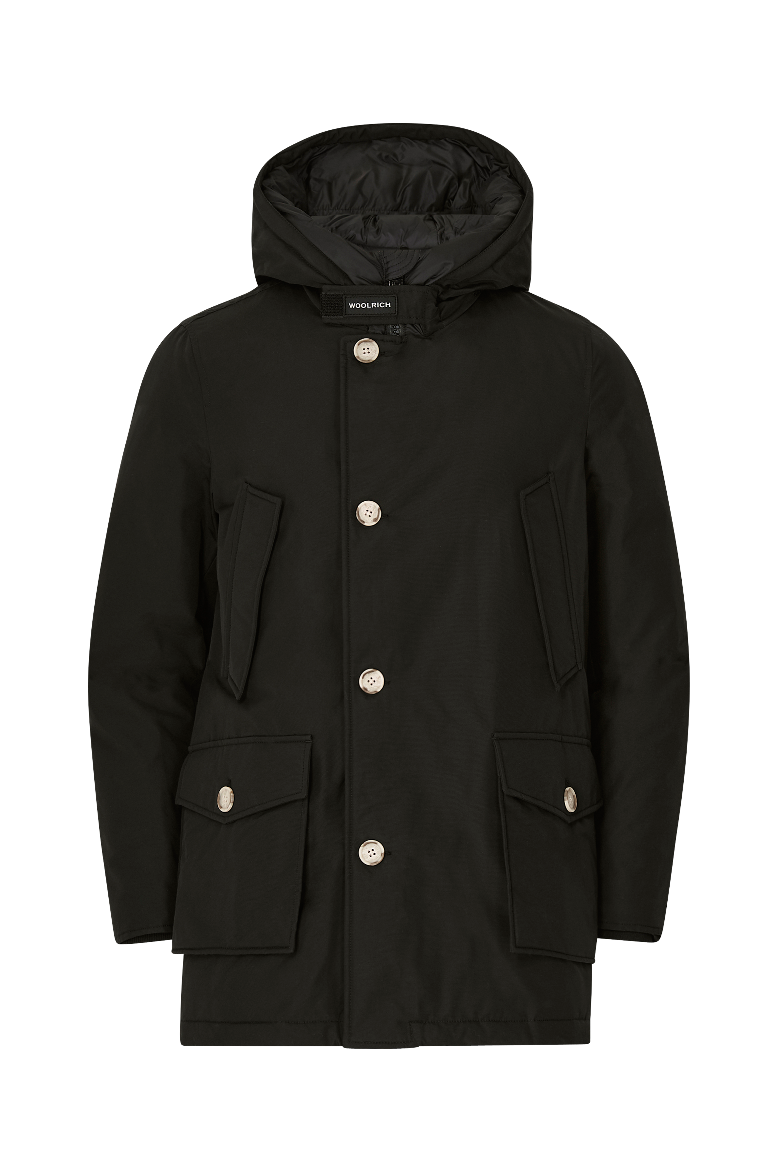 Dunjakke fra Woolrich. Jakken har en hempe ved hetten og justerbar snøring i midjen. Fire lommer og tre innerlommer. Vrangbord i ermekantene.