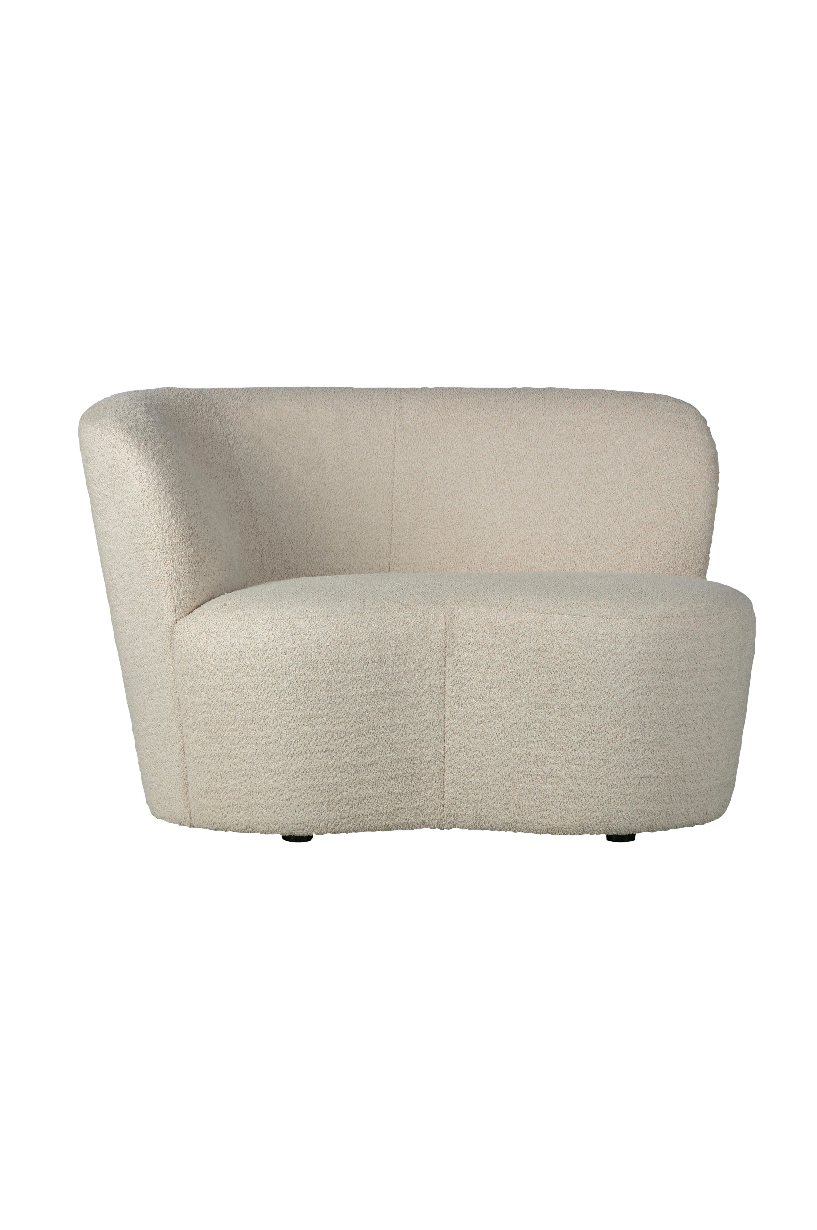 Sofaen Stone har en myk og innbydende følelse. Den lille sofaen Stone kommer fra det nederlandske merket WOOOD, og er kledd med beige boucléstoff (100% polyester). De myke, runde formene og det behagelige stoffet gjør sofaen til en herlig plass for avslapping. Takket være den lille størrelsen får sofaen plass i alle hjem. Stone sofa finnes både som venstre- og høyremodell, og i flere ulike tekstiler.