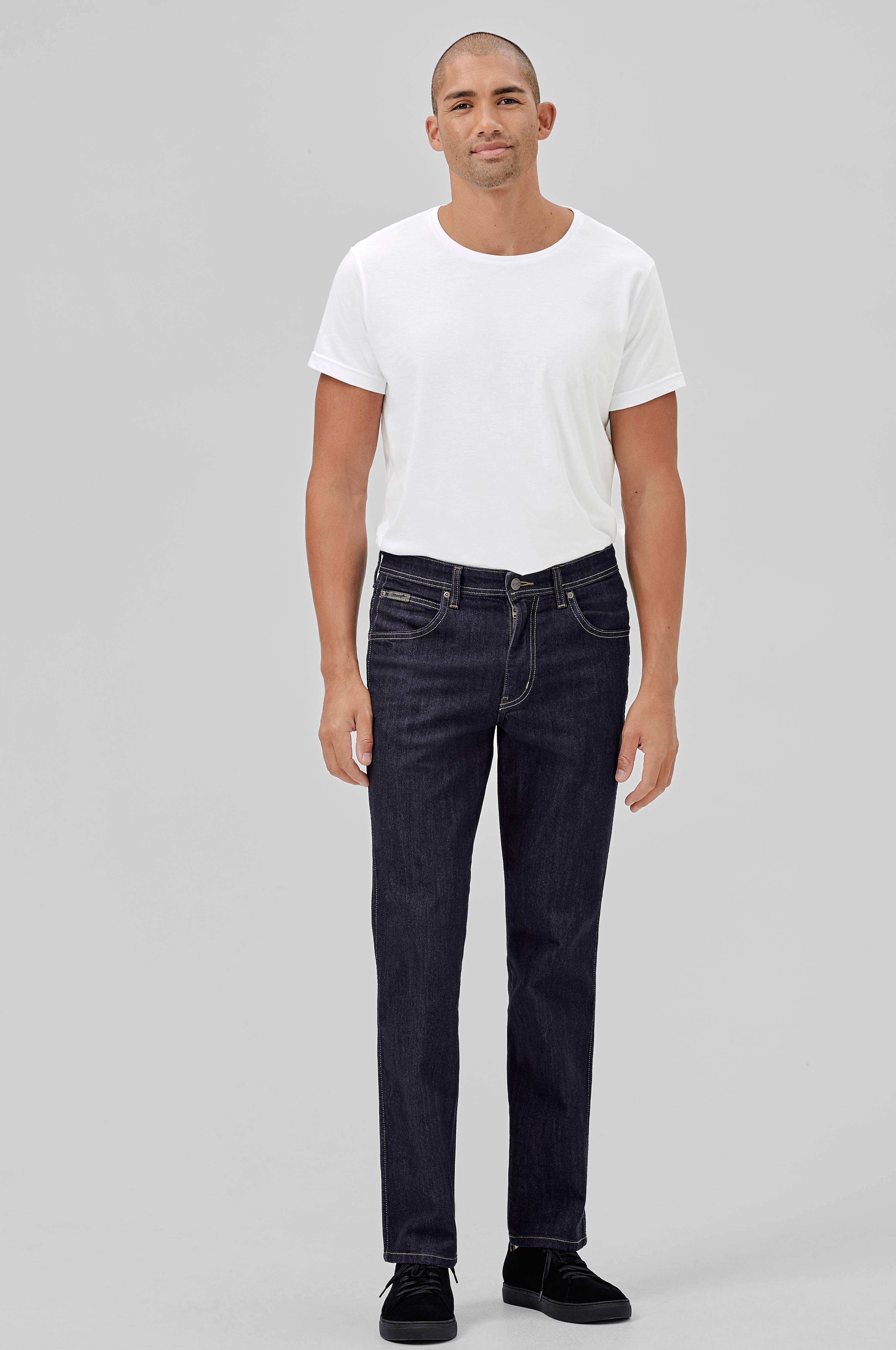 Jeans Arizona Stretch fra Wrangler. Modell med normal passform og rette ben. Tre forlommer og to baklommer samt glidelås i gylfen.