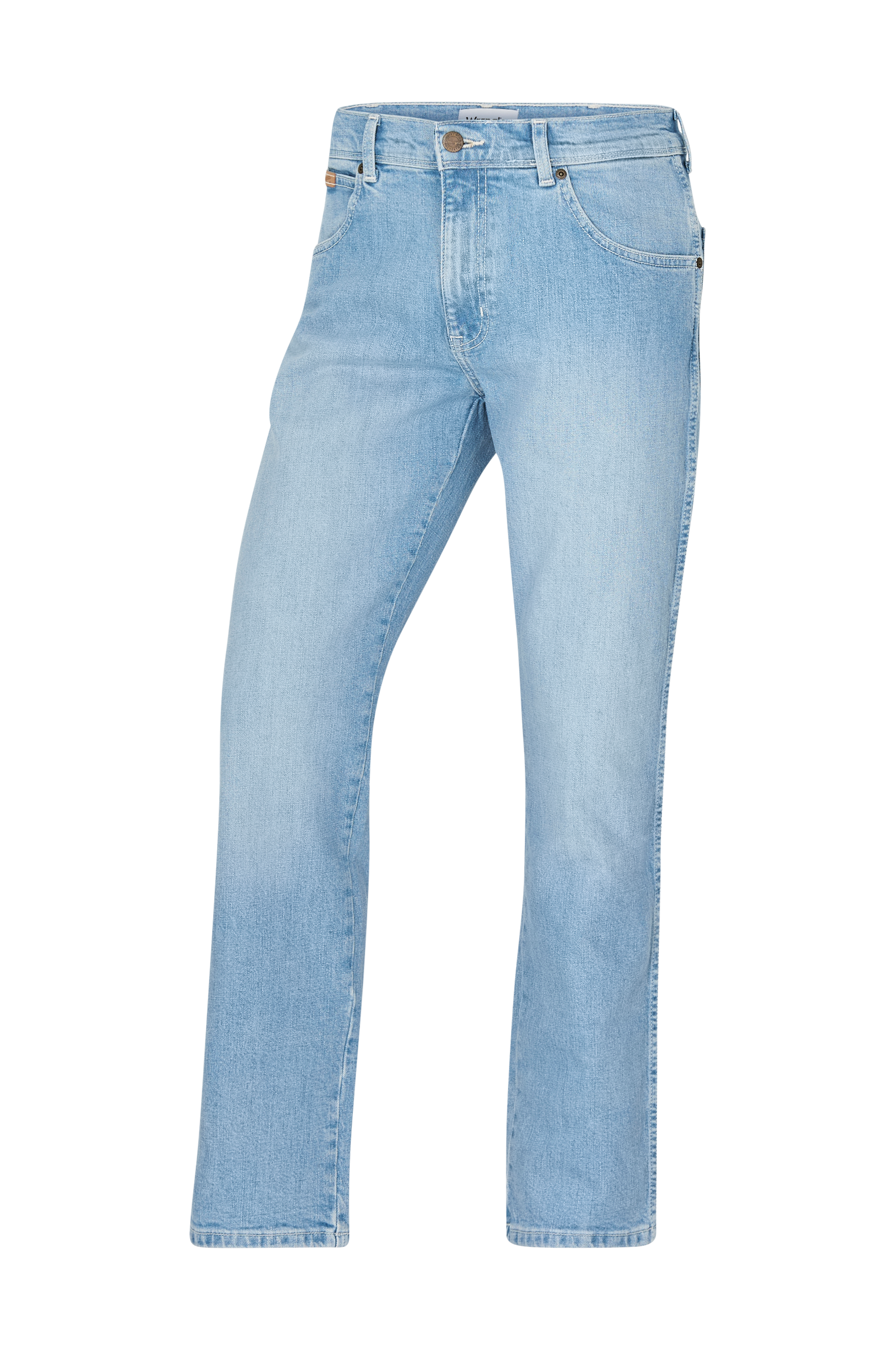 Jeans i stretchdenim med rette ben. Femlommersmodell med glidelås i gylfen.