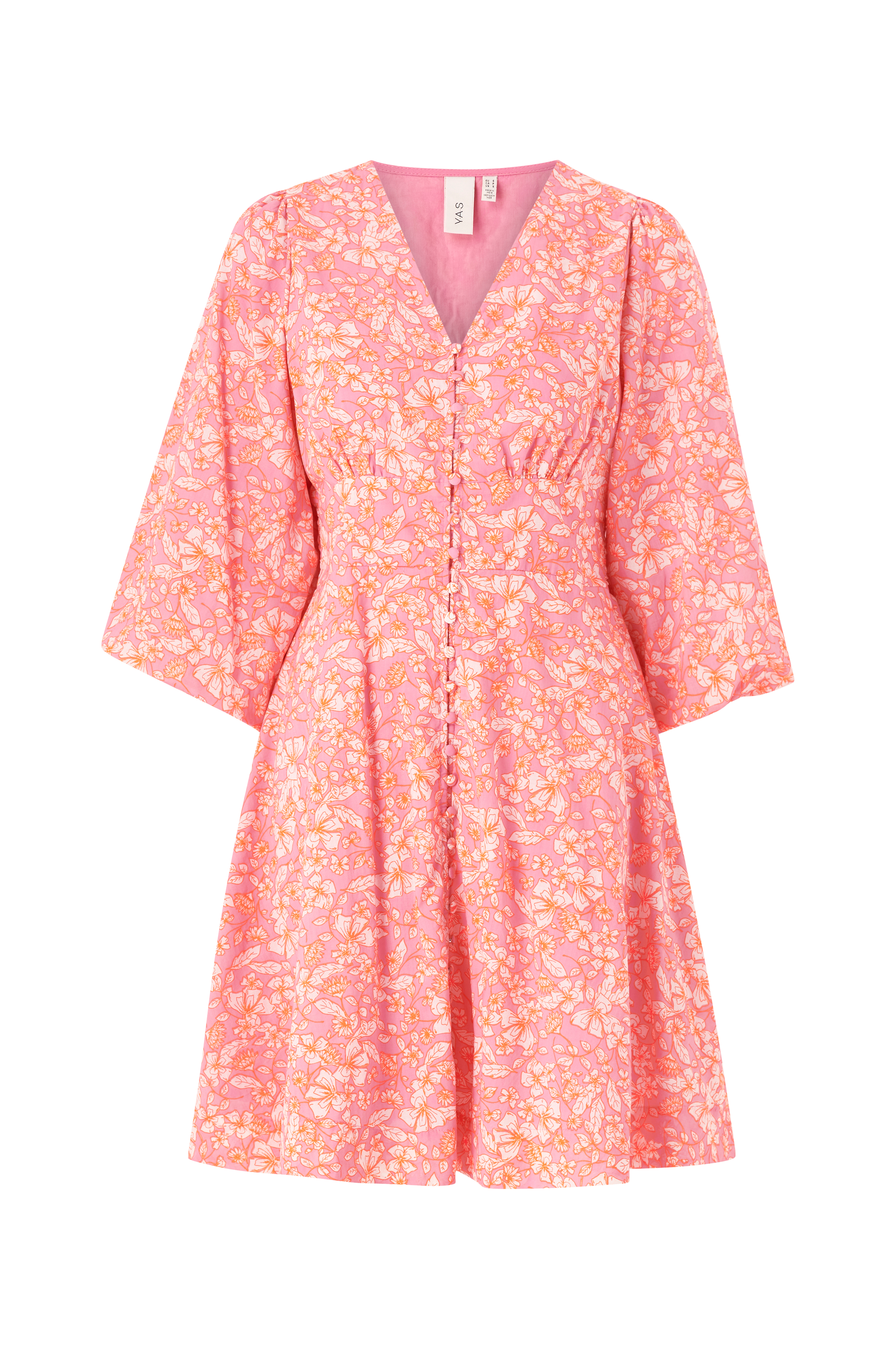 • Fôret kjole i bomull • V-formet hals • Stoffdekkede knapper hele veien fram • Halvlange ballongermer med elastisk strikk i ermeslutten • Vaffelsøm i midjen bak • Lengde: 95 cm i størrelse S • Produktet inneholder økologisk bomull som er dyrket uten kjemiske sprøytemidler, kunstgjødsel og genmodifiserte avlinger (GMO). Det innebærer et sunnere arbeidsmiljø for bønder og et bedre jordsmonn.