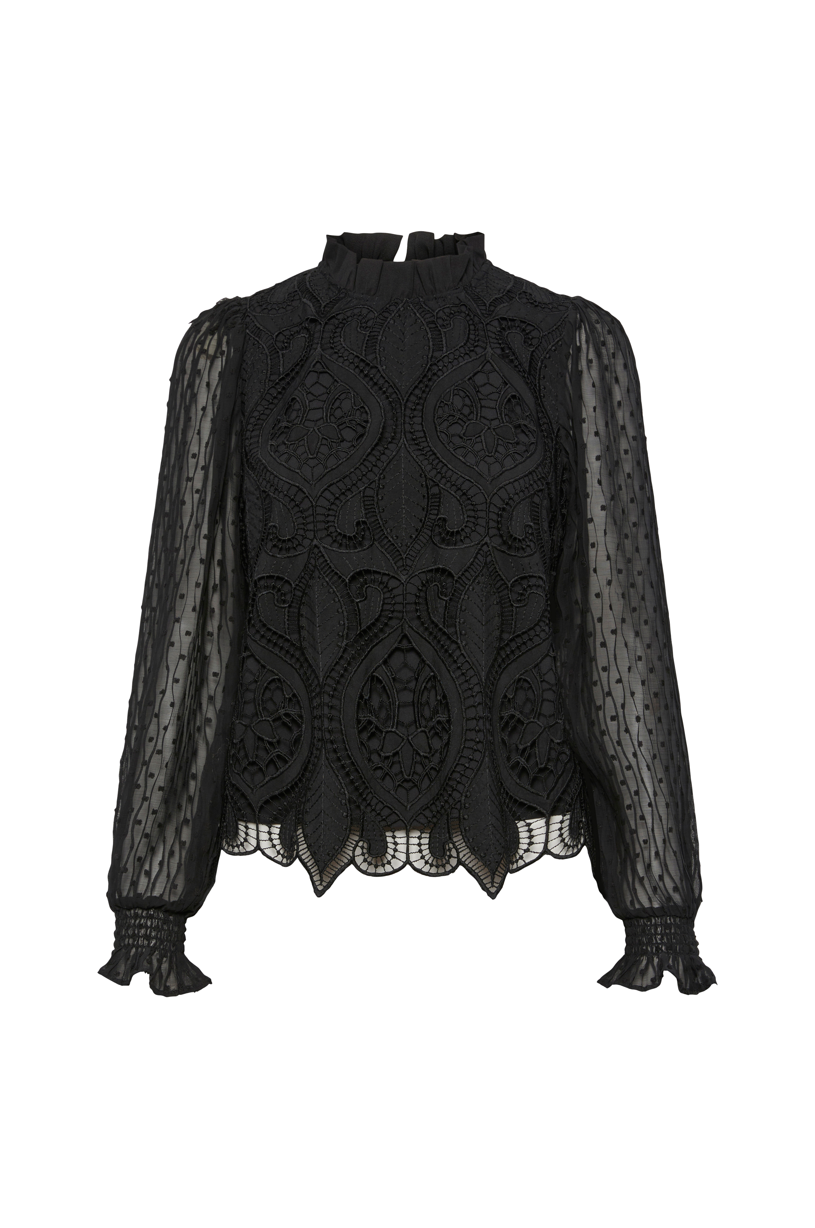 • Rett modell i blonde med erme i chiffon• Volangkant i halsen med knapper i nakken• Bred bobleerme med elastiske sømmer på bunnen• Fôret