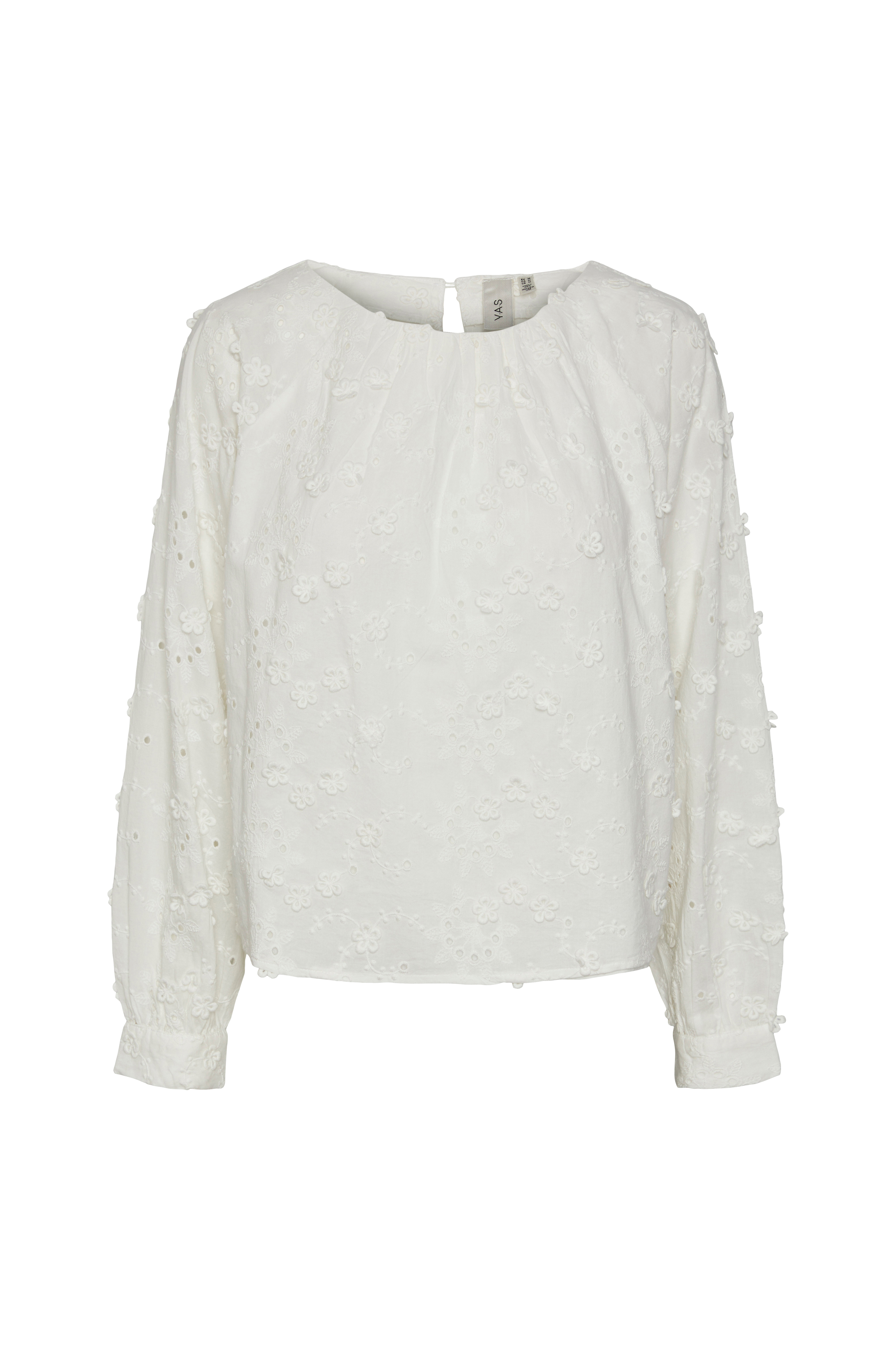 • Rett modell med hullbroderier overalt• Hals med rysje foran og knapp i nakken• Raglanerme med mansjett i ermeslutten• Fôret