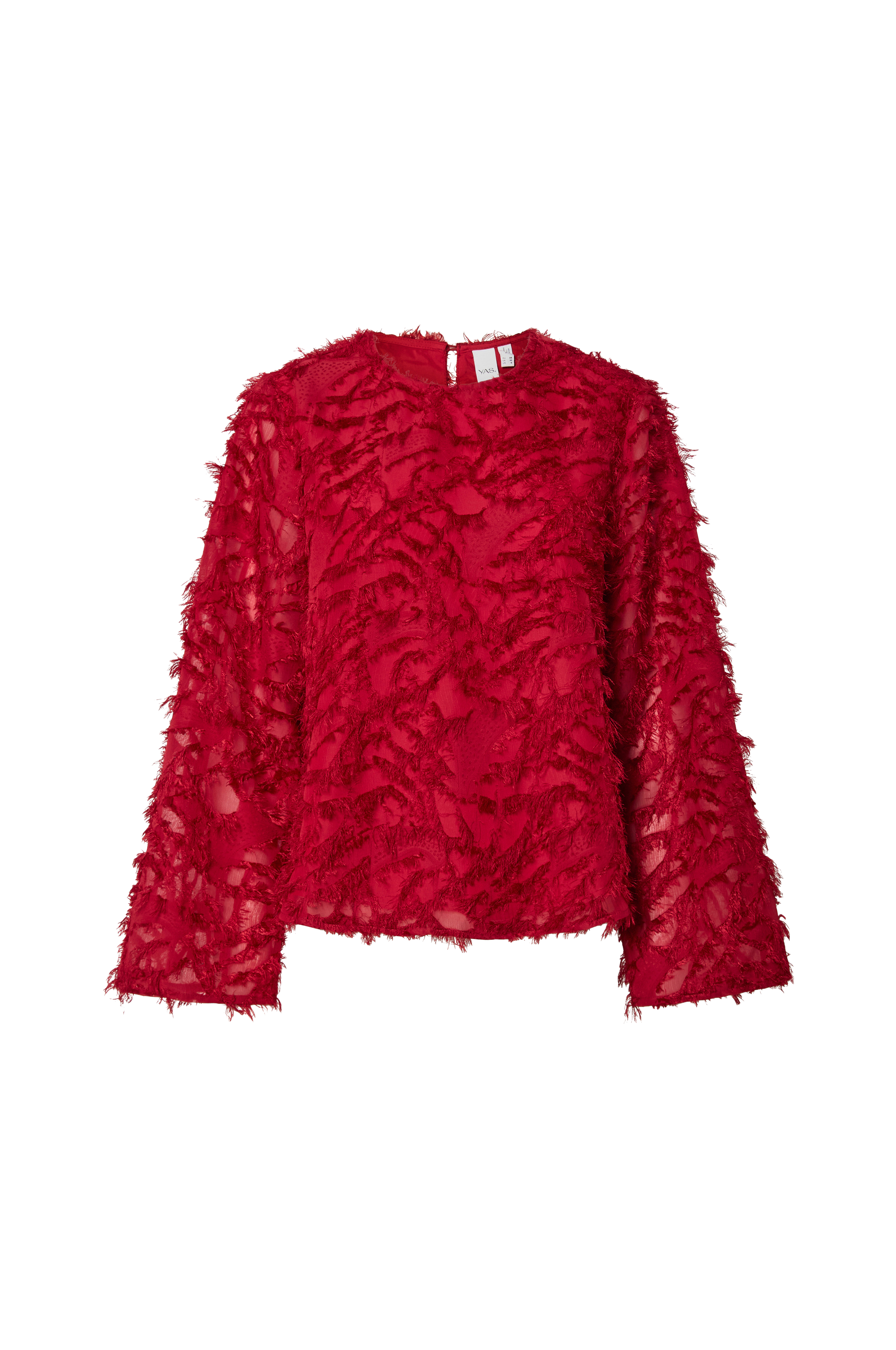 • Langermet bluse med frynsedetaljer rundt• Rund hals med knapp i nakken• Vevd innsidefôr