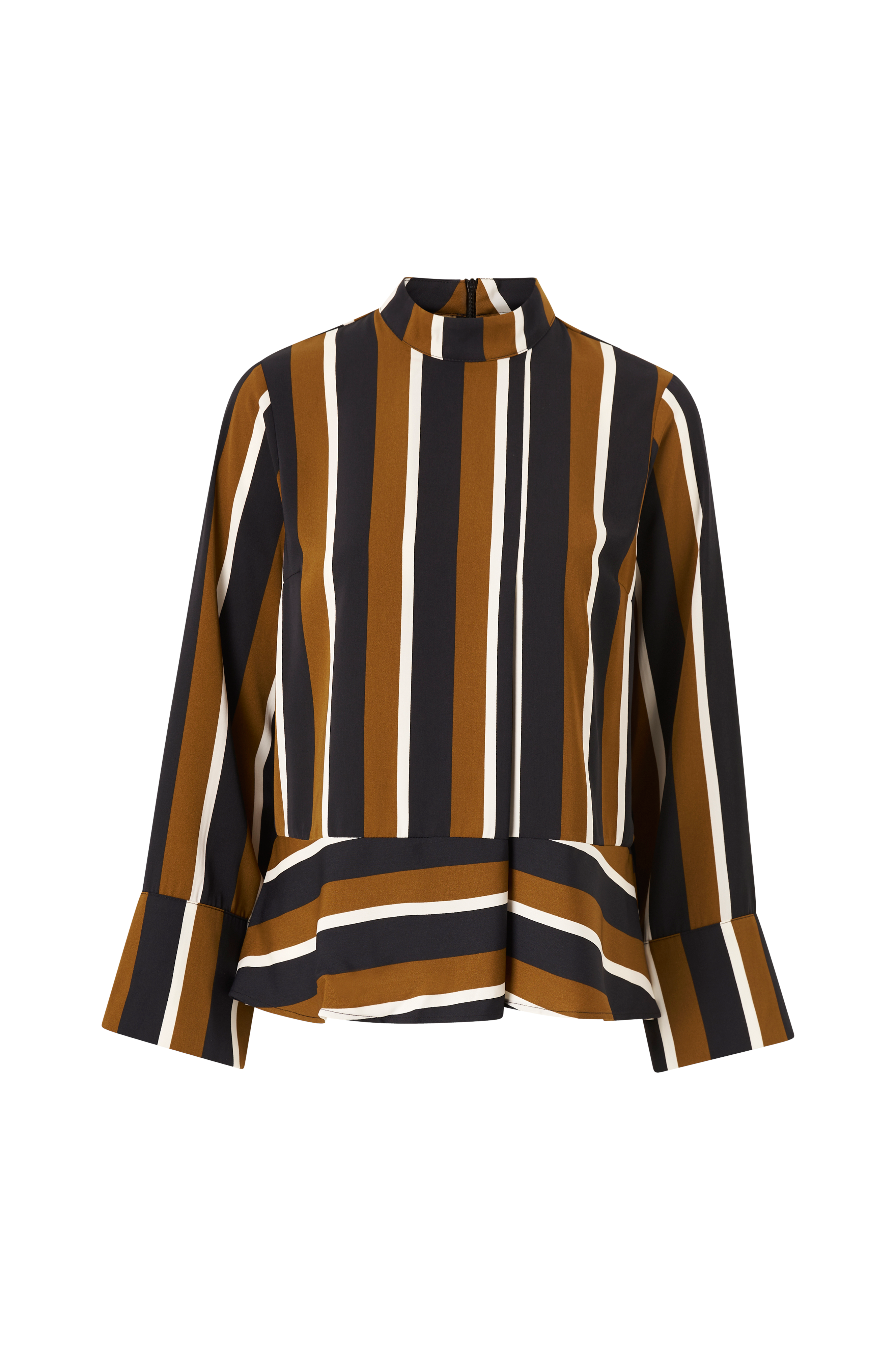 • Høy hals• Lange ermer• Fold foran• Skjult glidelås bakpå