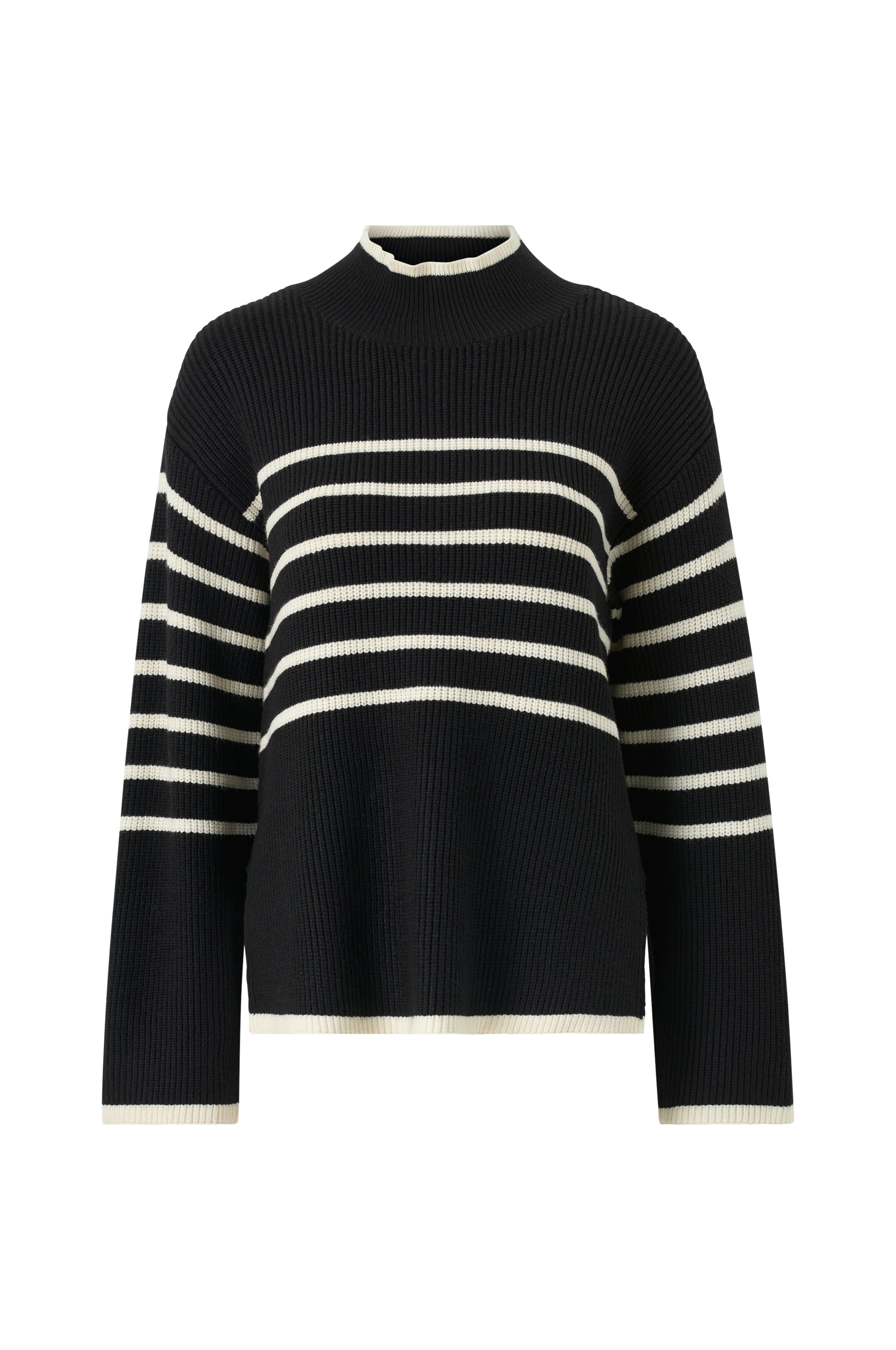 • Strikket genser i viskosemiks• Høy, ribbet, rund krage• Utringede skuldre• Splitt i sidene