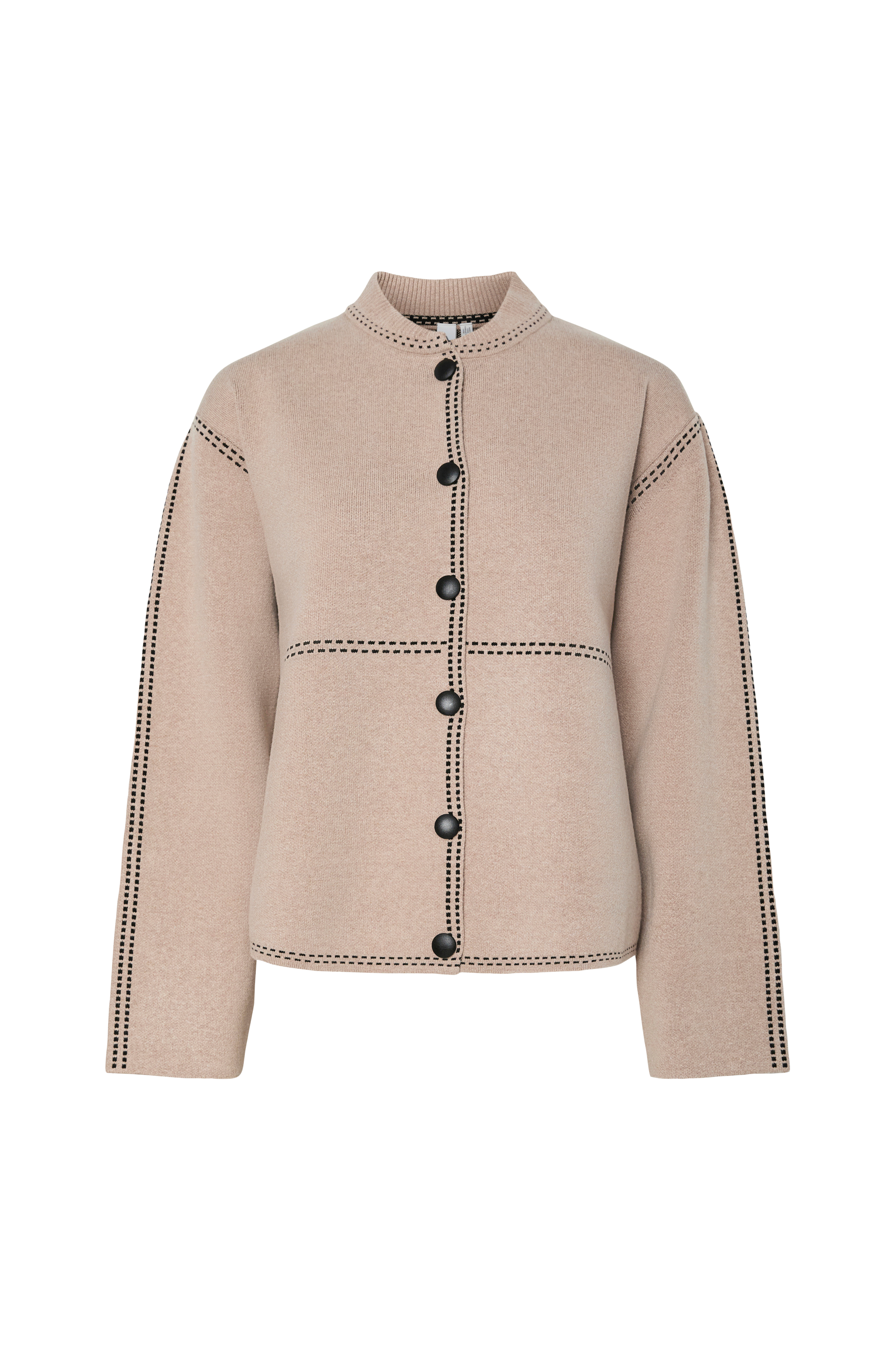 • Rund hals med ribbestrikket krage