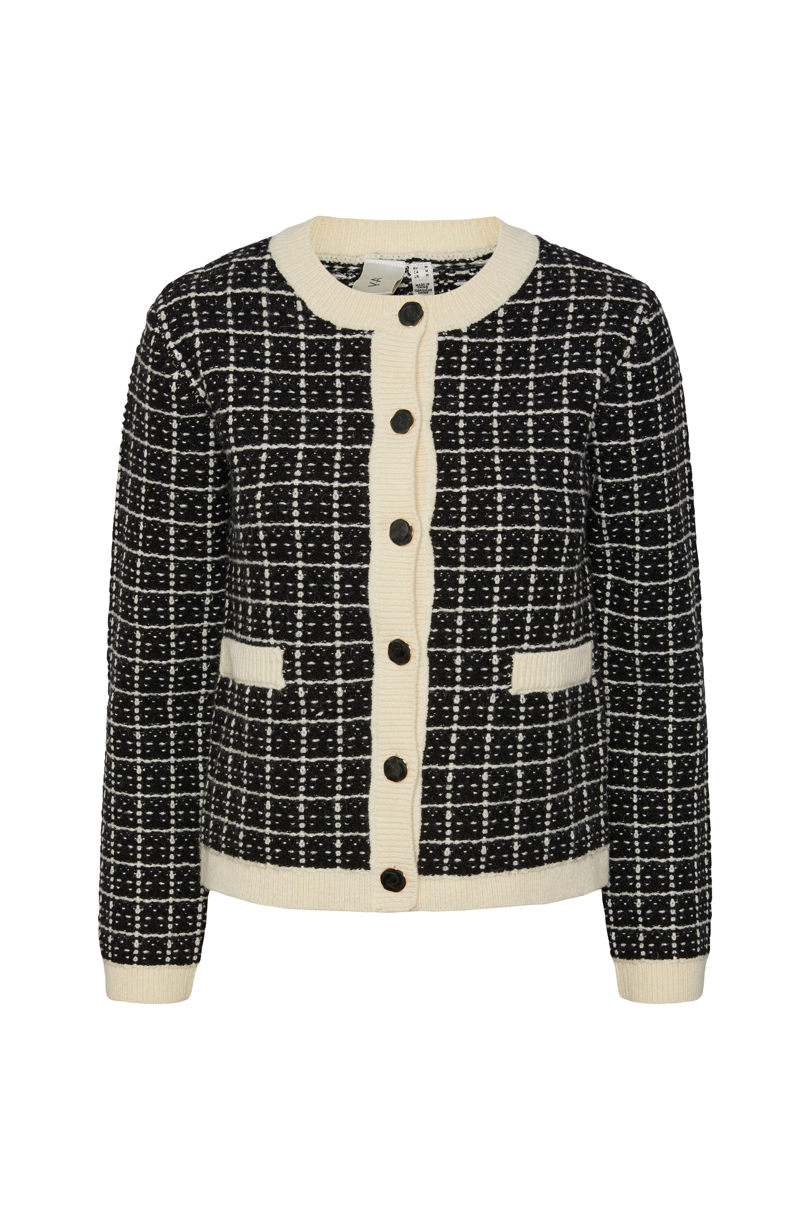 • Svarte, blanke knapper foran• Ensfargede, ribbede kanter• Diskret glittertråd• Ullfølelse