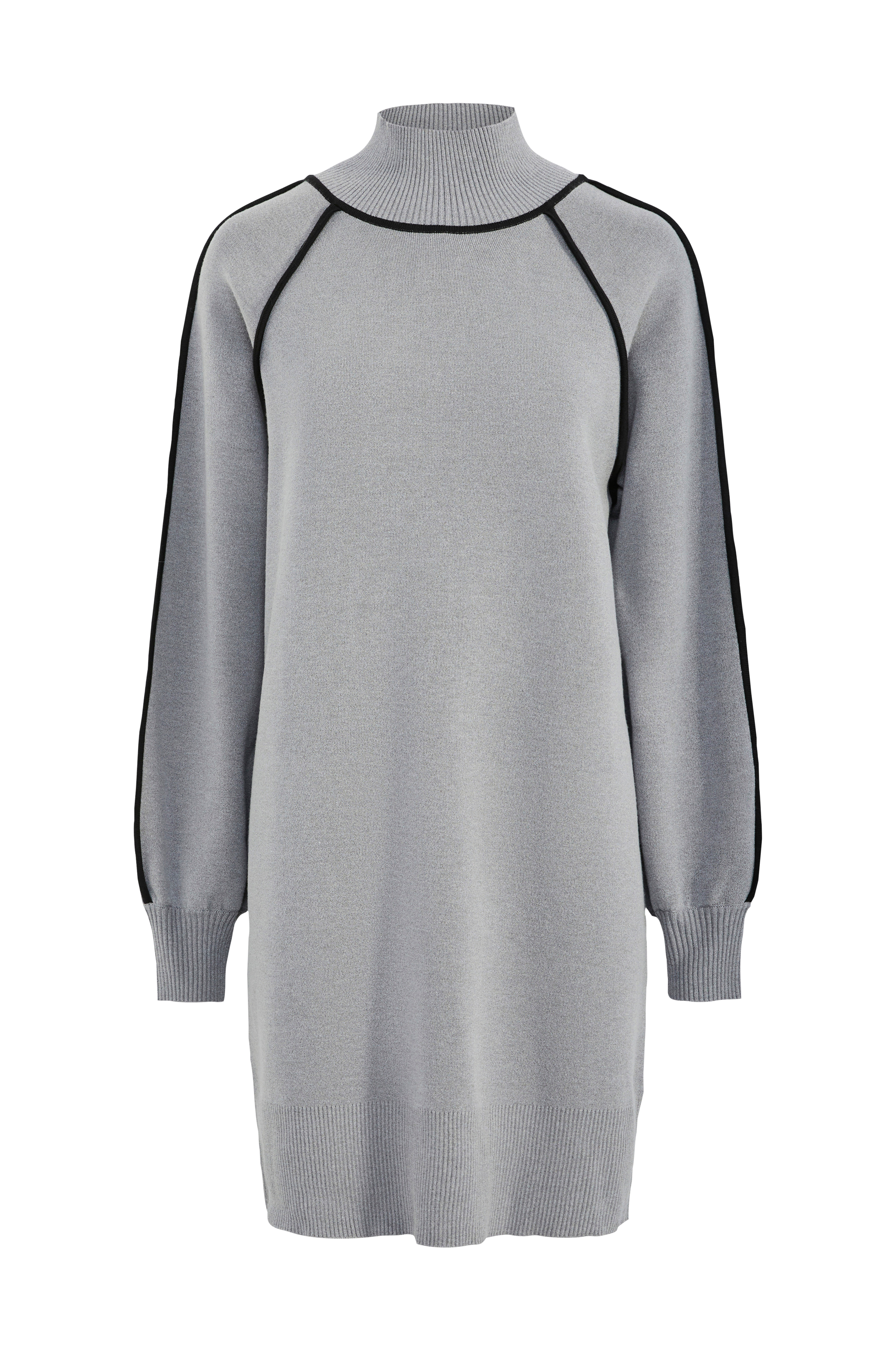 • Langermet, finstrikket kjole med ribbestrikket, høy hals• Ballongformede armer med ribbestrikk i ermeslutten• Ribbestrikk i nedre kant• Litt tykkere sømdetalj på ermene, bakpå og foran• Lengde: 98 cm i størrelse S