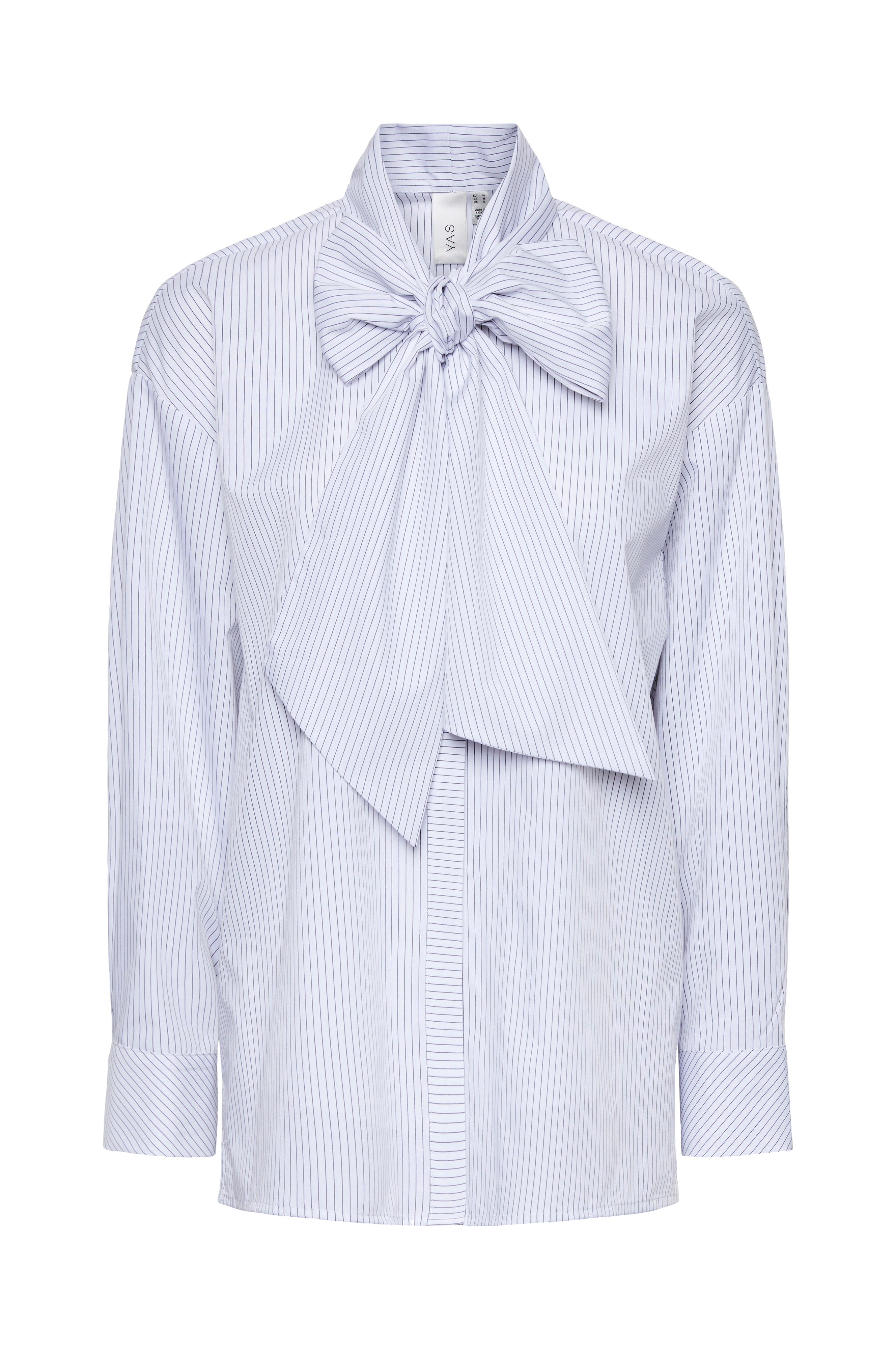 • Lang modell med skjult knappstolpe foran• Bred knytbar tråd i halsen• Langt erme med mansjett• Kort skjær nede i sidene