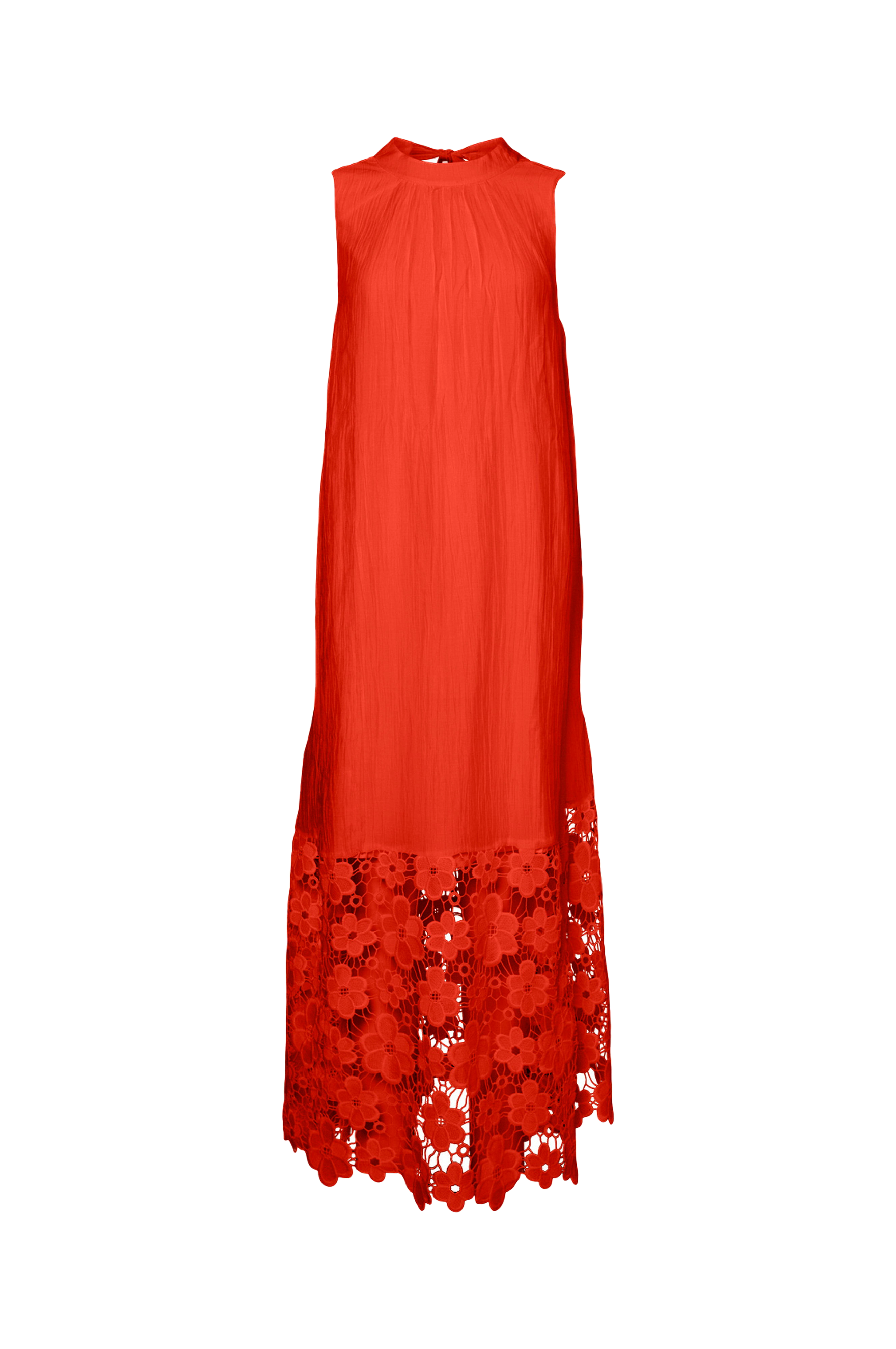 • Lang, utsvingt, ermløs modell med brede blonder på bunnen• Halvhøy krage med ventilasjon og lang knytbar tråd i nakken• Fôret• Lengde: 140 cm i størrelse 36