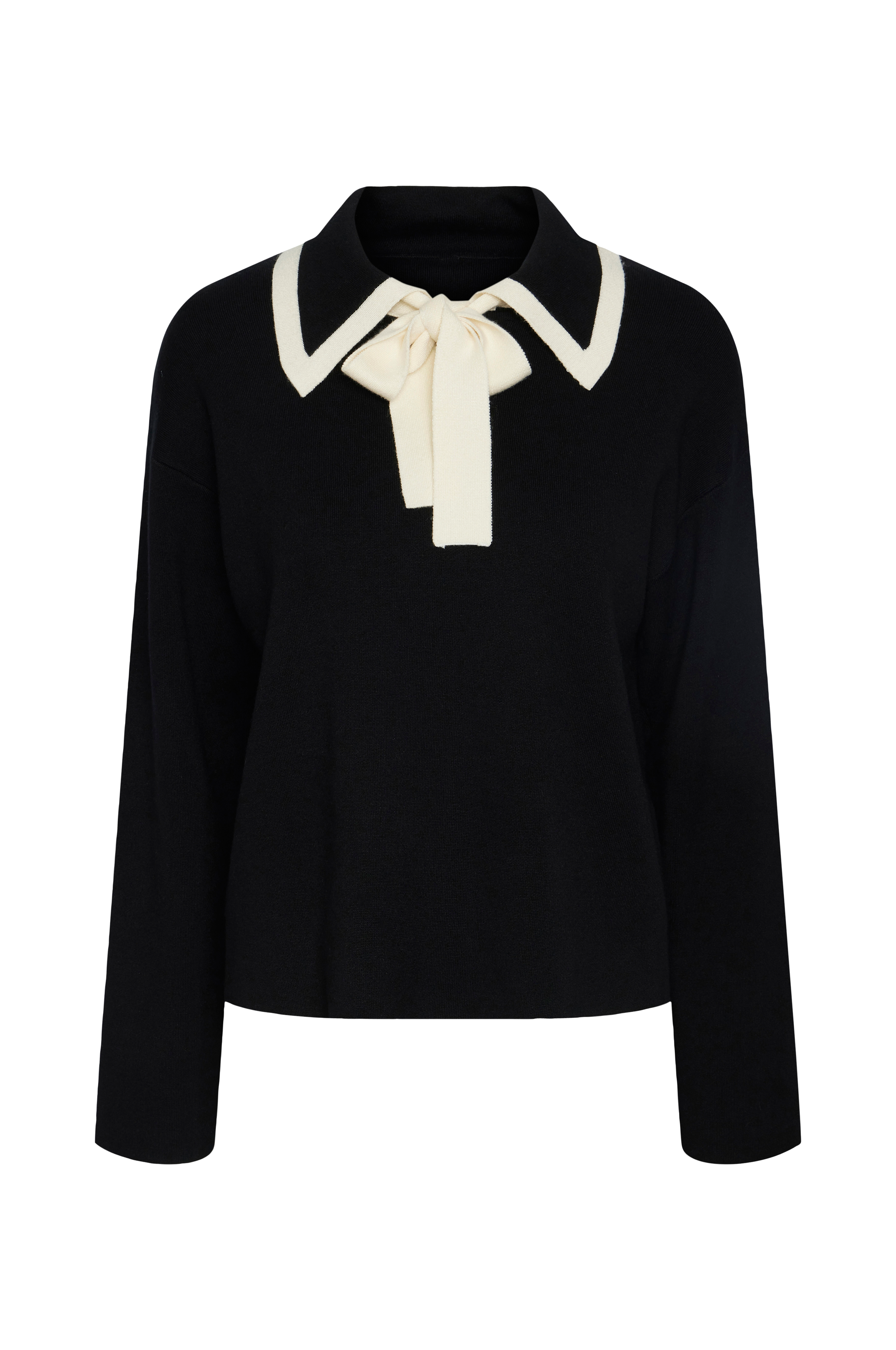 • Finstrikket, langermet pullover• Krage med avtakbar knytbar tråd rundt halsen