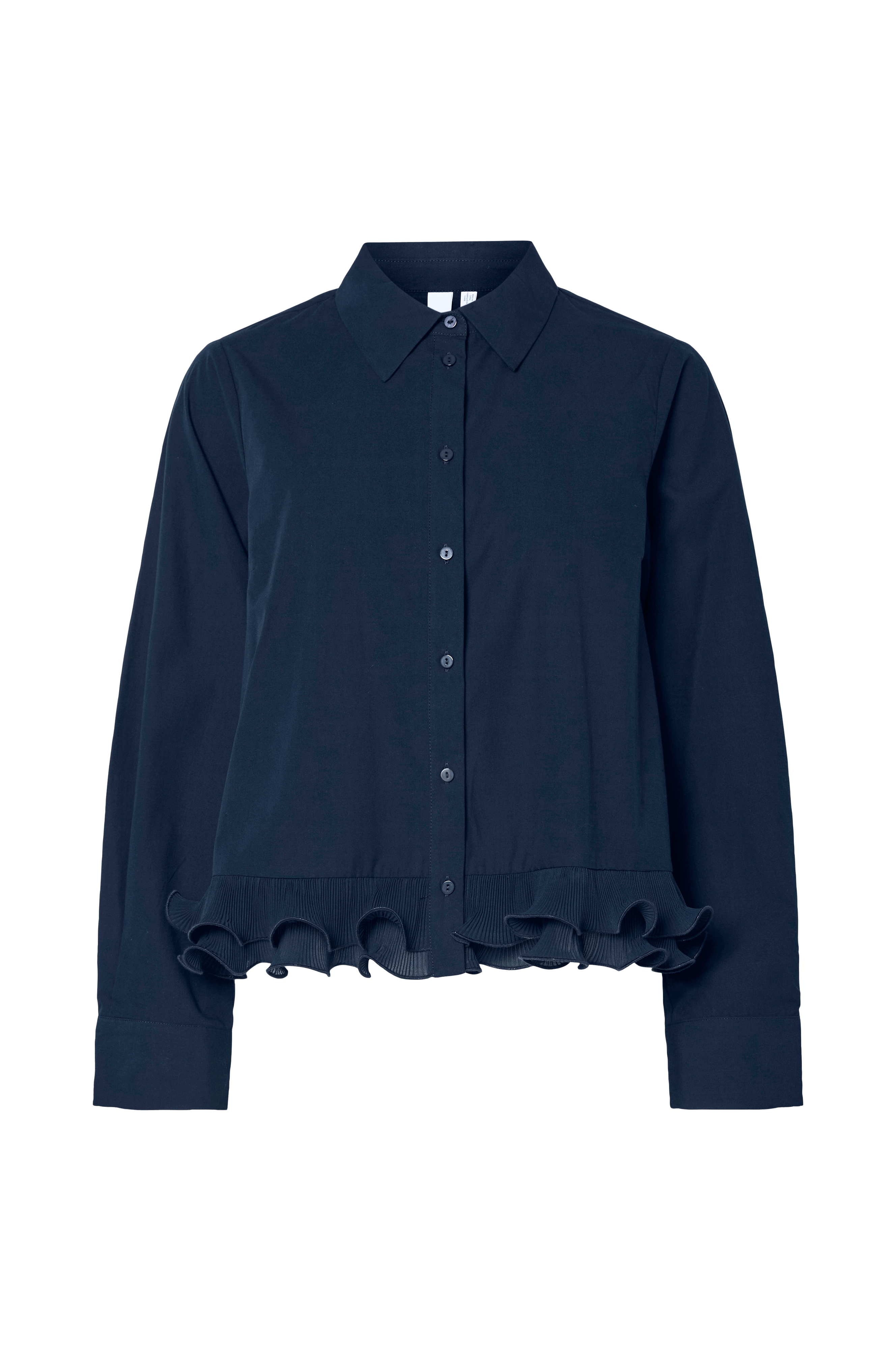 • Skjorte i bomull• Lange ermer med mansjetter• Dobbel volangkant i chiffon på bunnen