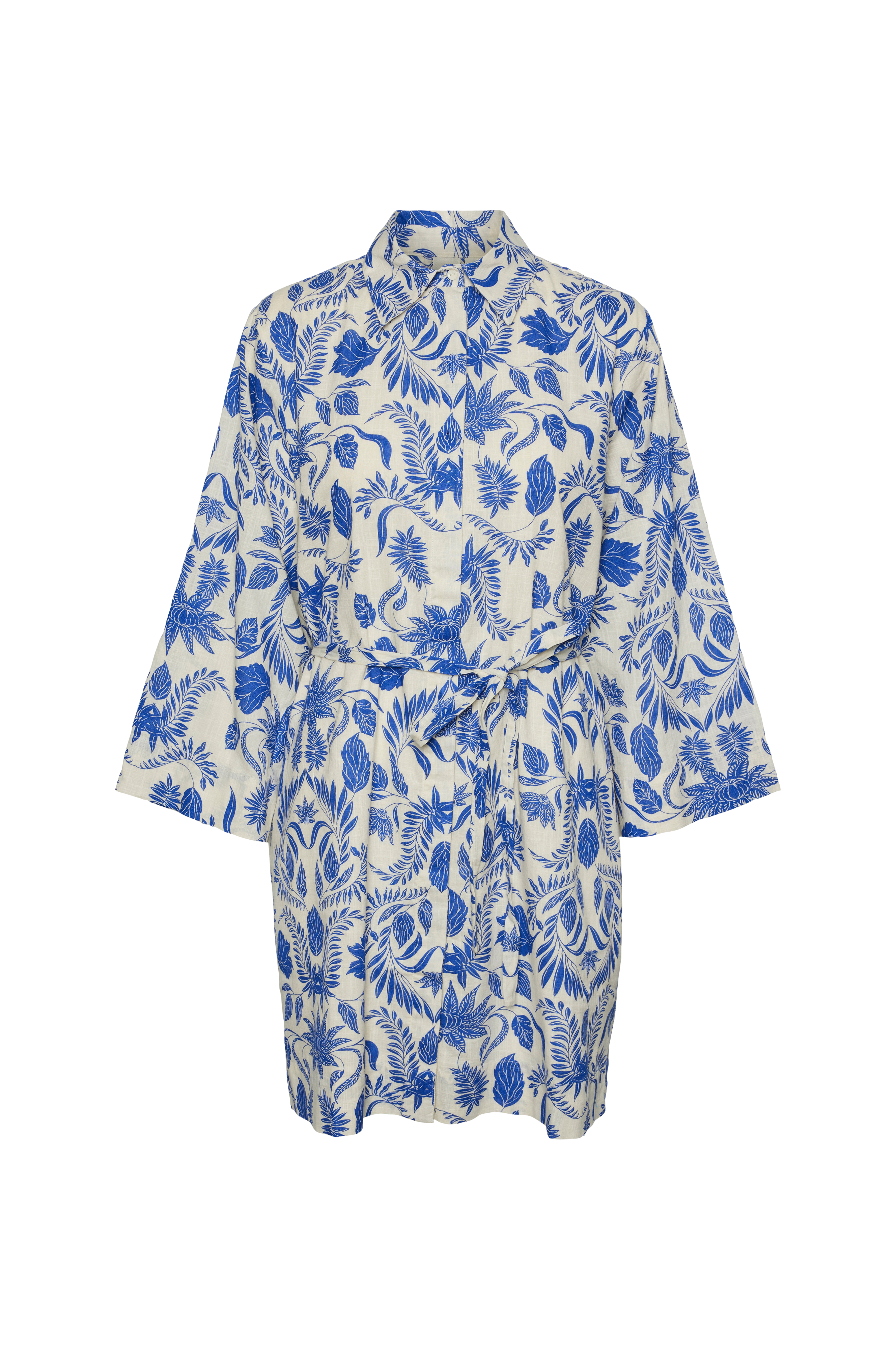 • Kort, mønstret kjole• Skjulte knapper foran• Brede ermer• Knytbart belte ved midjen• Tynn foring• Lengde: 90 cm i størrelse S