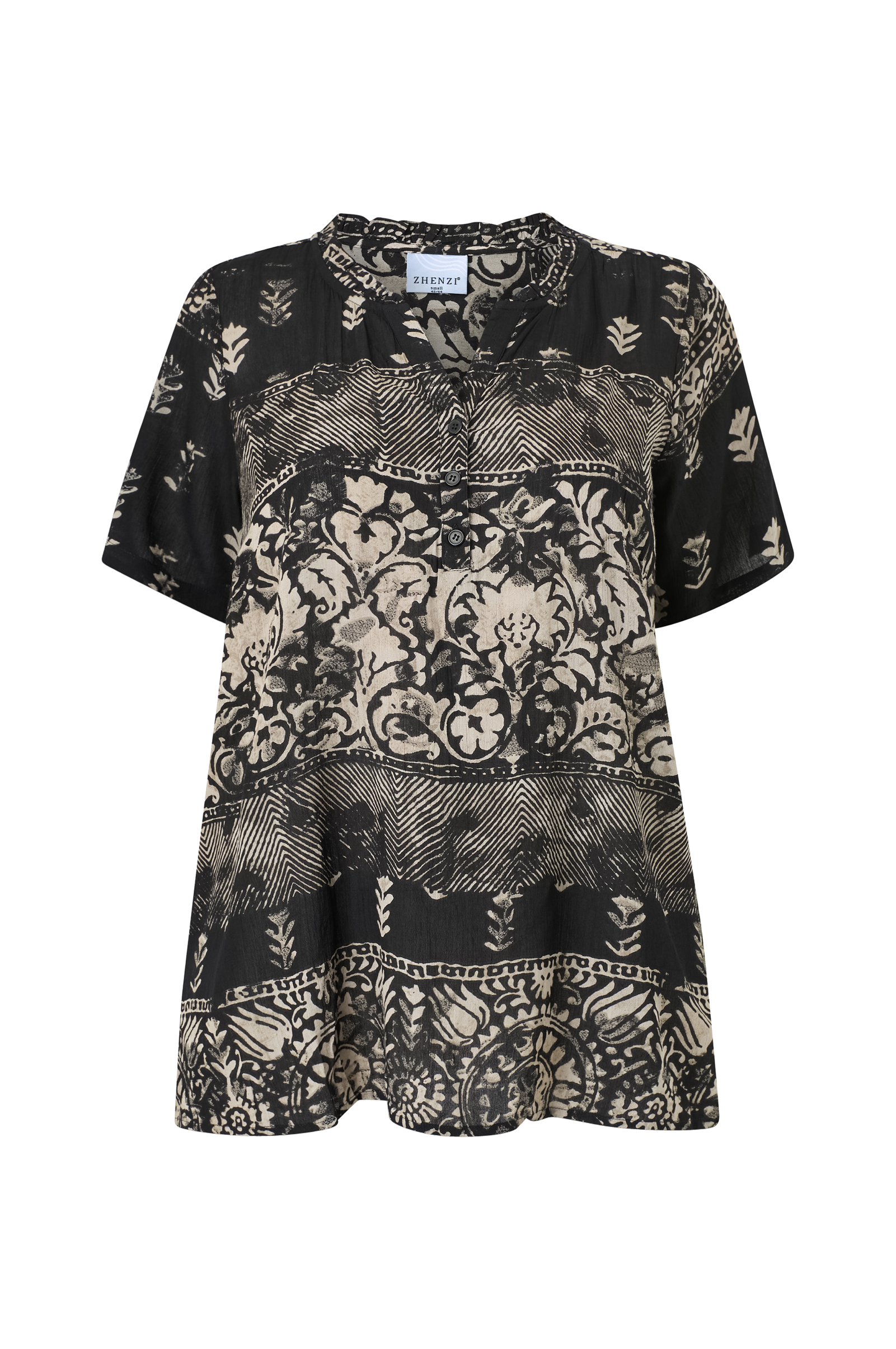 • Kortermet bluse med avslappet passform• V-formet hals med volangkrage og knapper• Pluss-størrelser