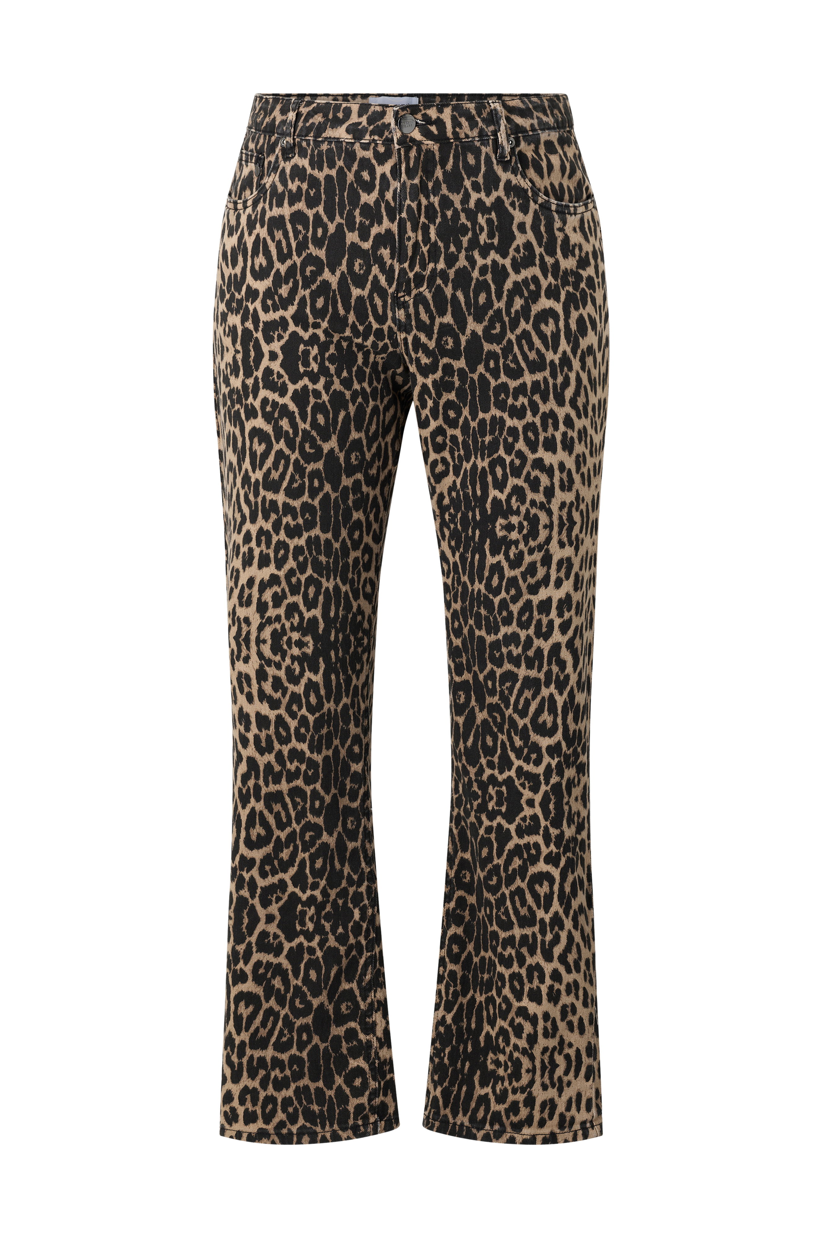 • Leopardmønstret boot cut jeans• Femlommemodell• Lynlås• Pluss-størrelser• Indre benlengde: 80 cm i størrelse 42