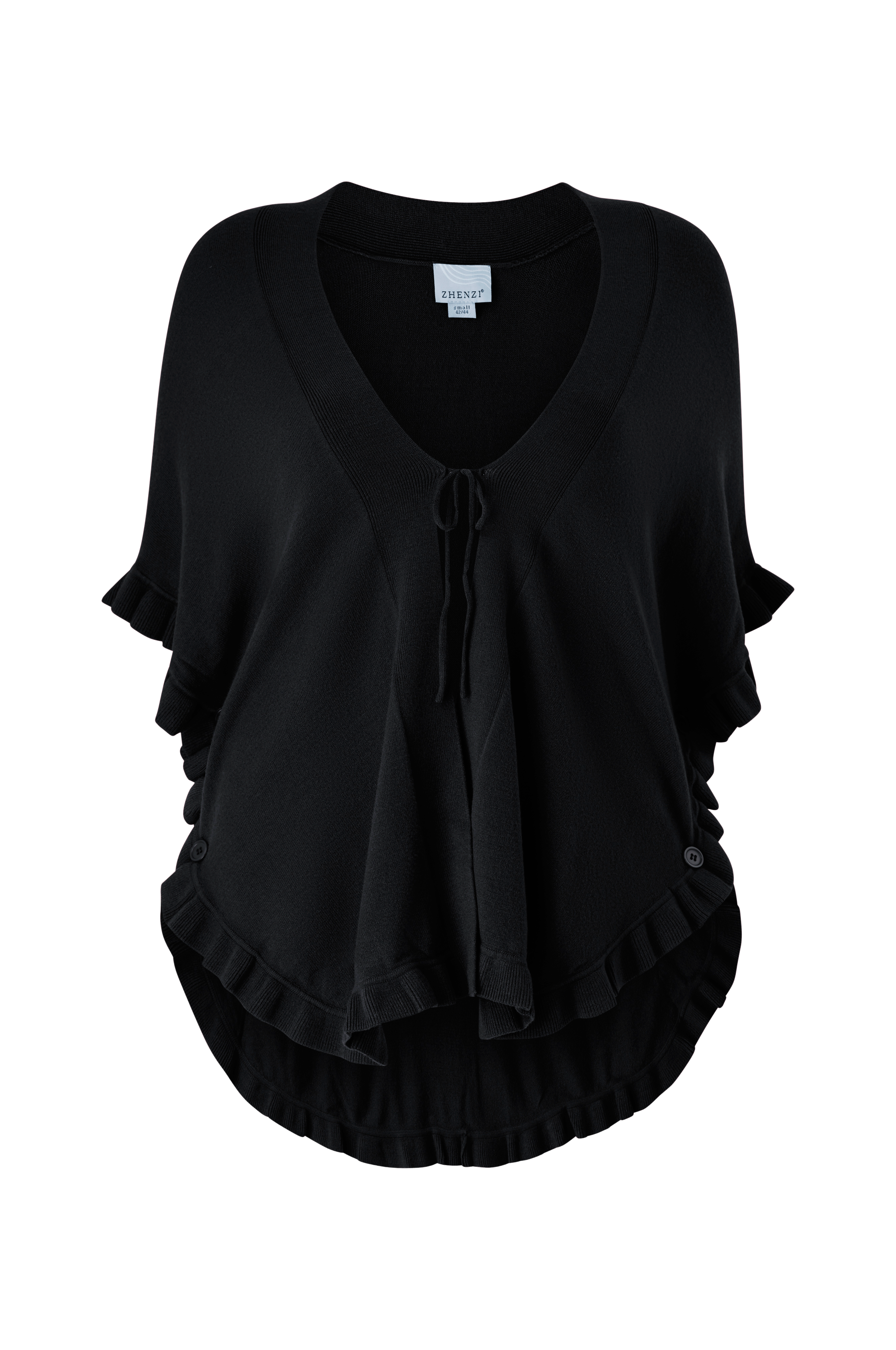 • Myk, finstrikket poncho med knytbar tråd foran