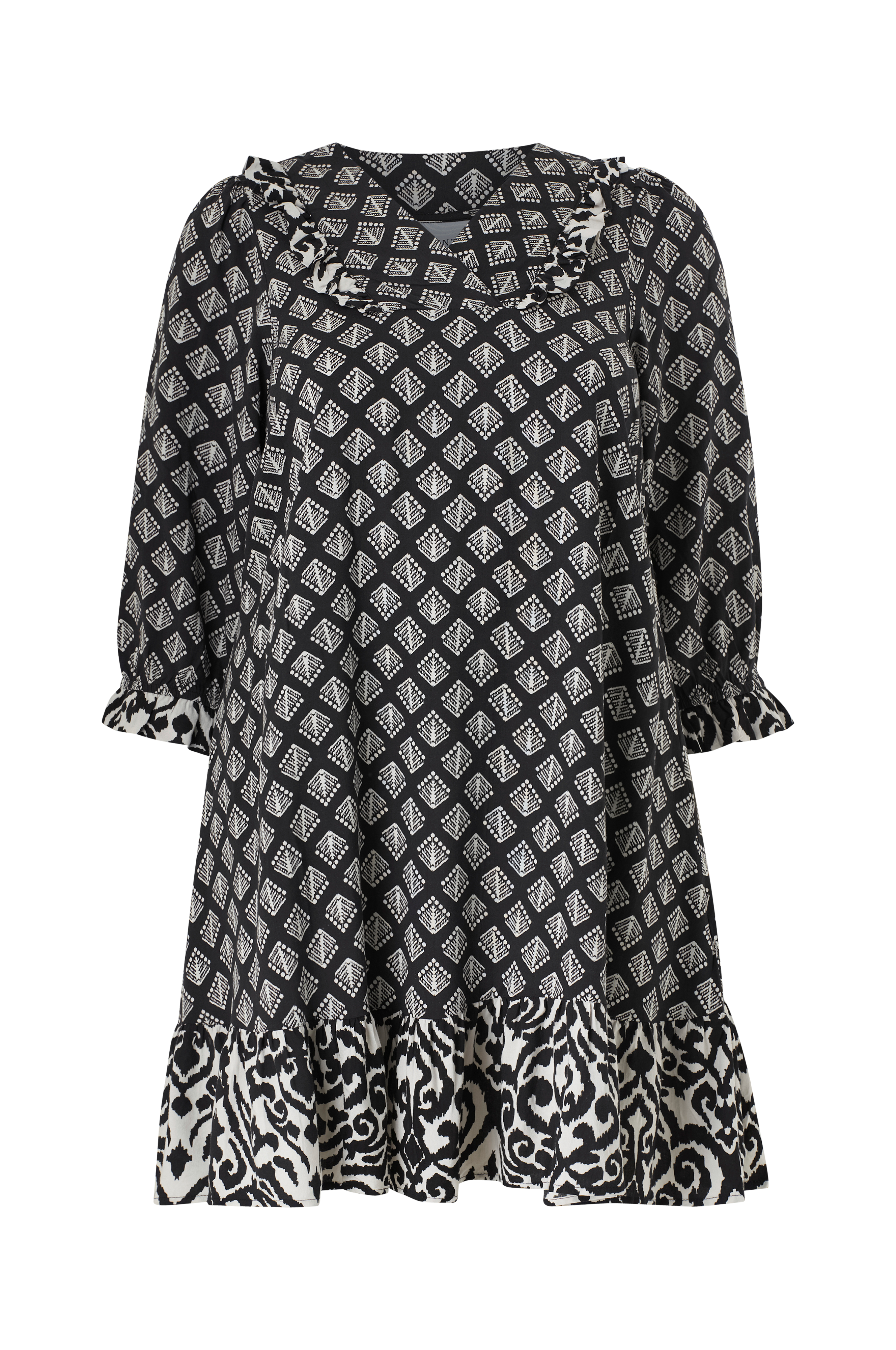 • Plusstørrelser• Utsvingt, uformell modell• V-formet hals med volangkant• Bobleerme 3/4 lang med gummistrikk på bunnen• Lengde: 96 cm i størrelse S
