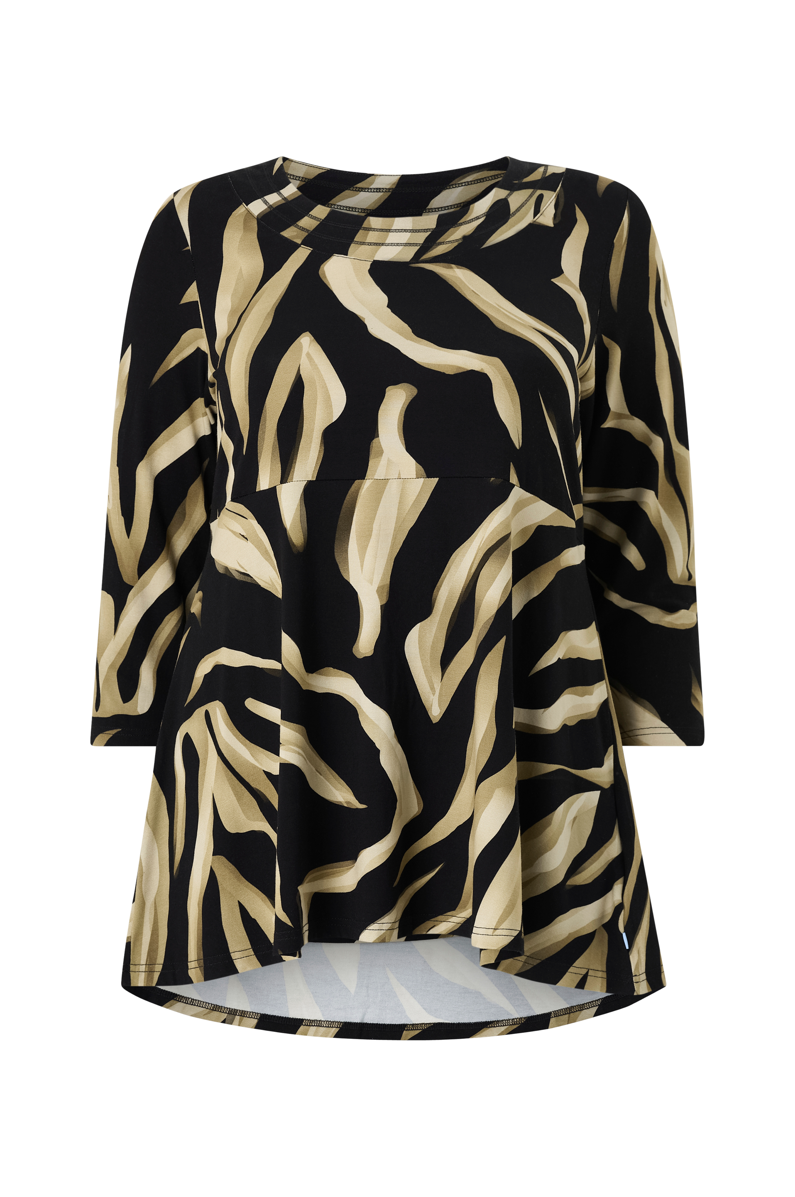 • Myk, stretchy tunika i viskose• Rund hals• Ermer 3/4 lang• Definert midje• Litt utsvinget skjørt• Pluss-størrelser• Lengde: 76 cm i størrelse S