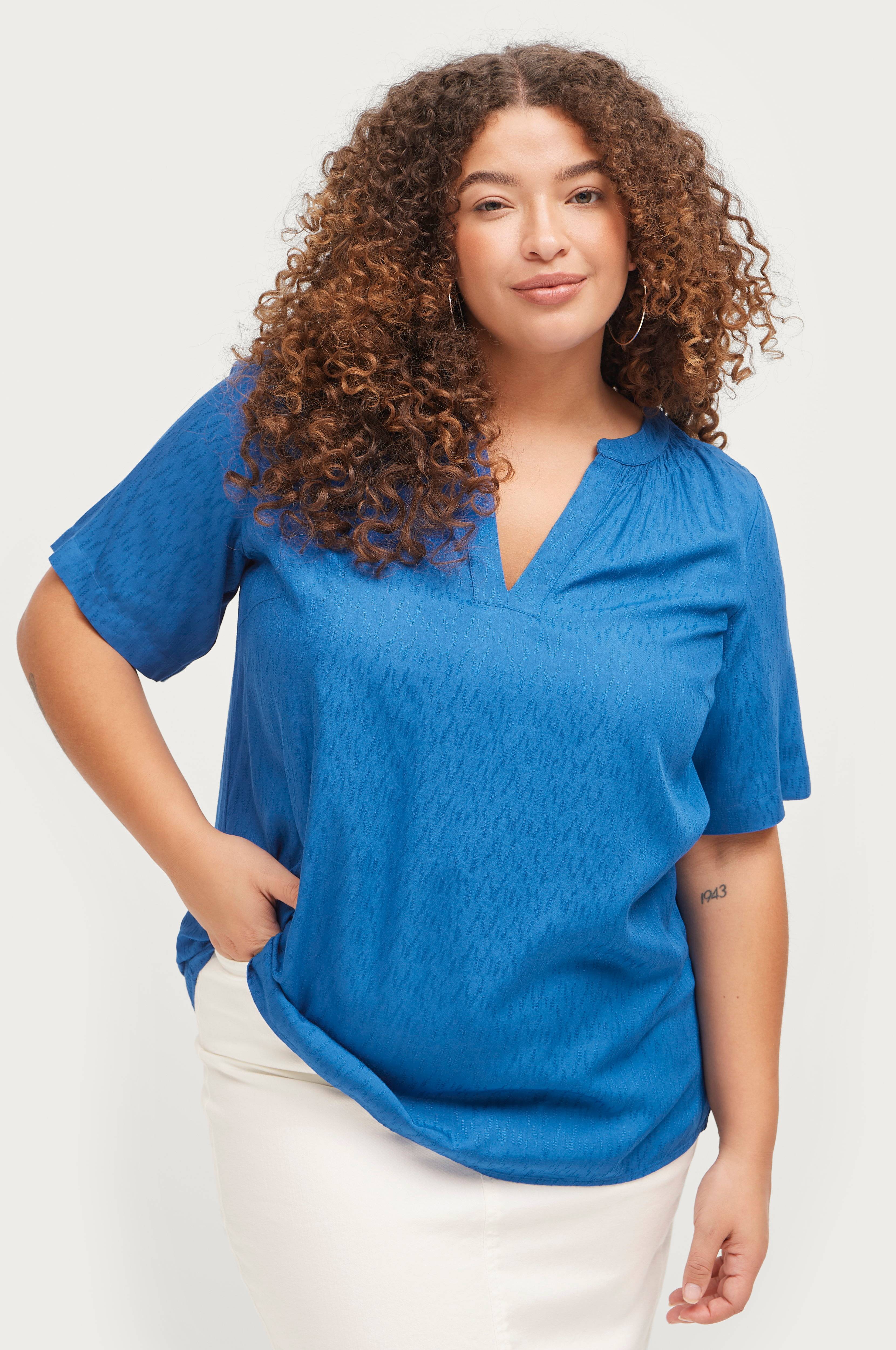 • Bluse i viskose med struktur• V-formet hals• Smockdetalj rundt halsringningen• Plusstørrelser