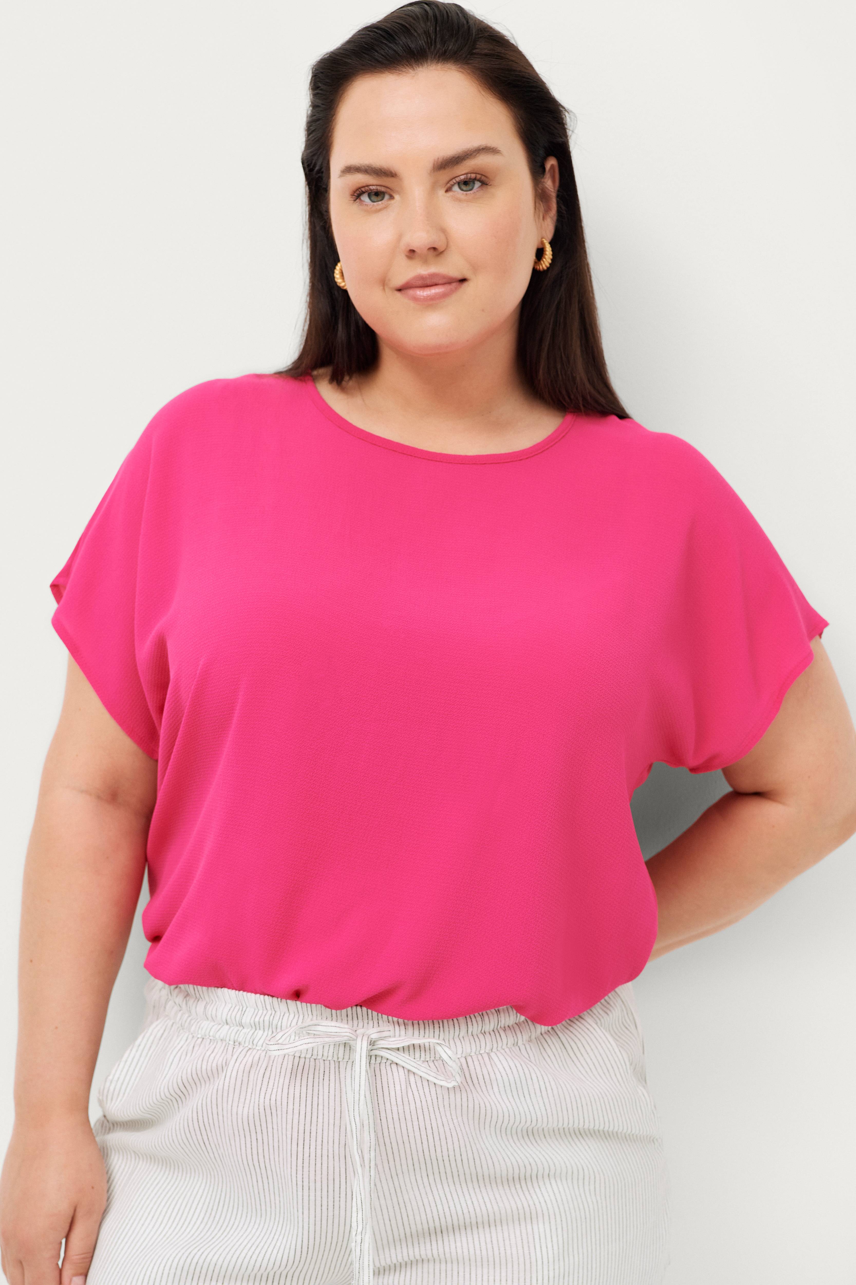 • Rund hals• Korte ermer• Avrundet hem• Kreppet kvalitet