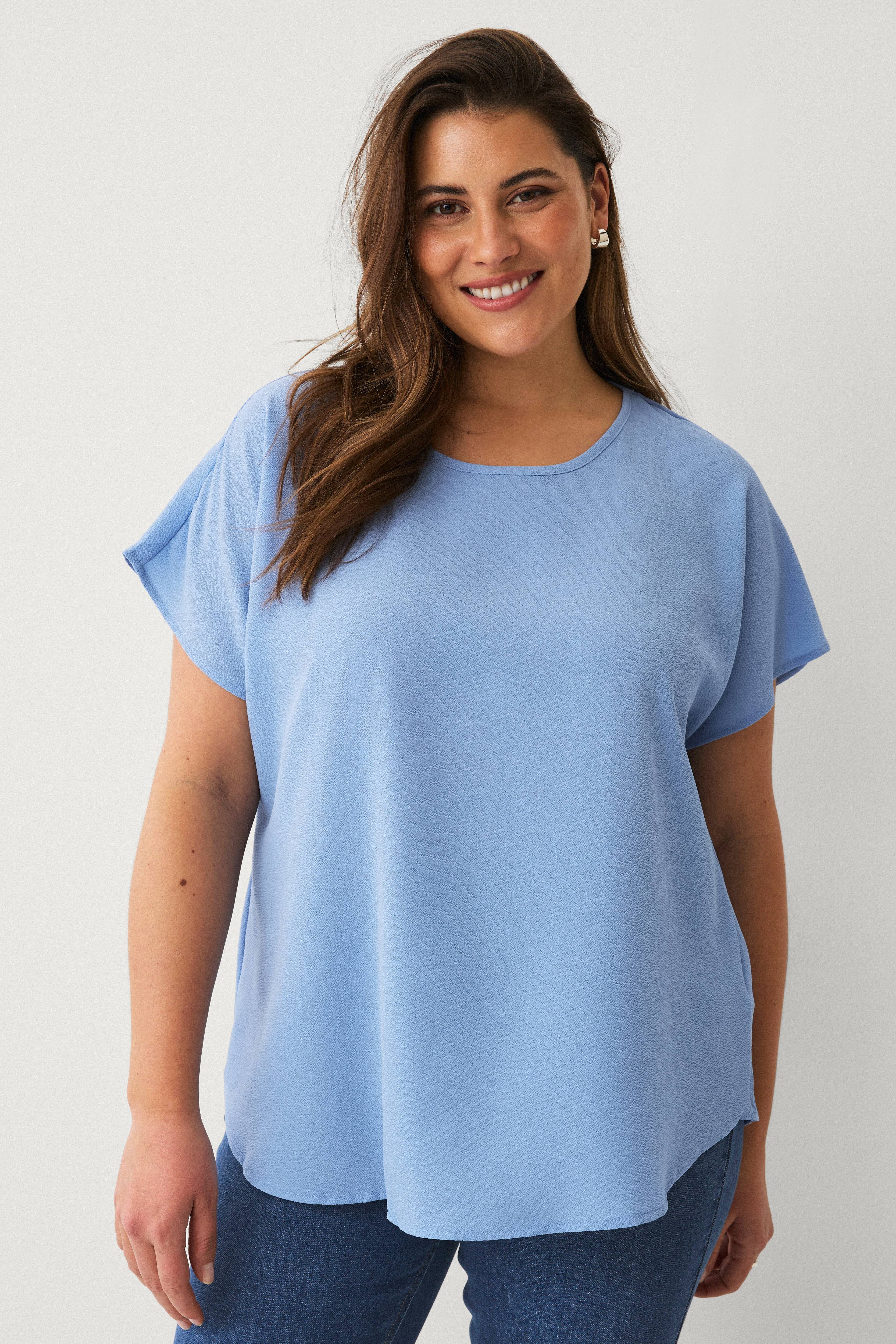 • Rund hals• Korte ermer• Avrundet hem• Kreppet kvalitet