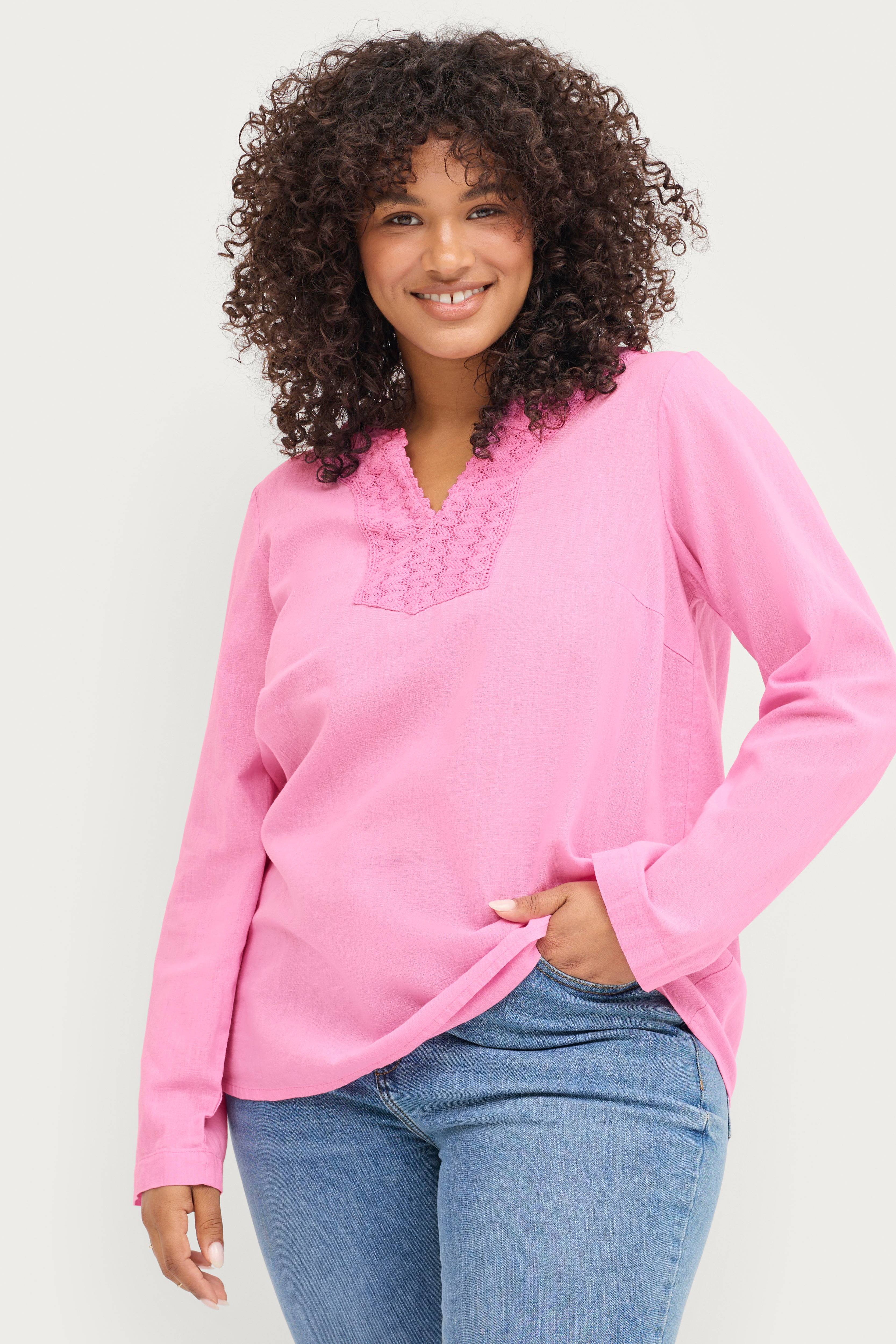 • Bluse i linmiks• V-hals snitt med brodert mønster• Lange ermer• Plusstørrelser
