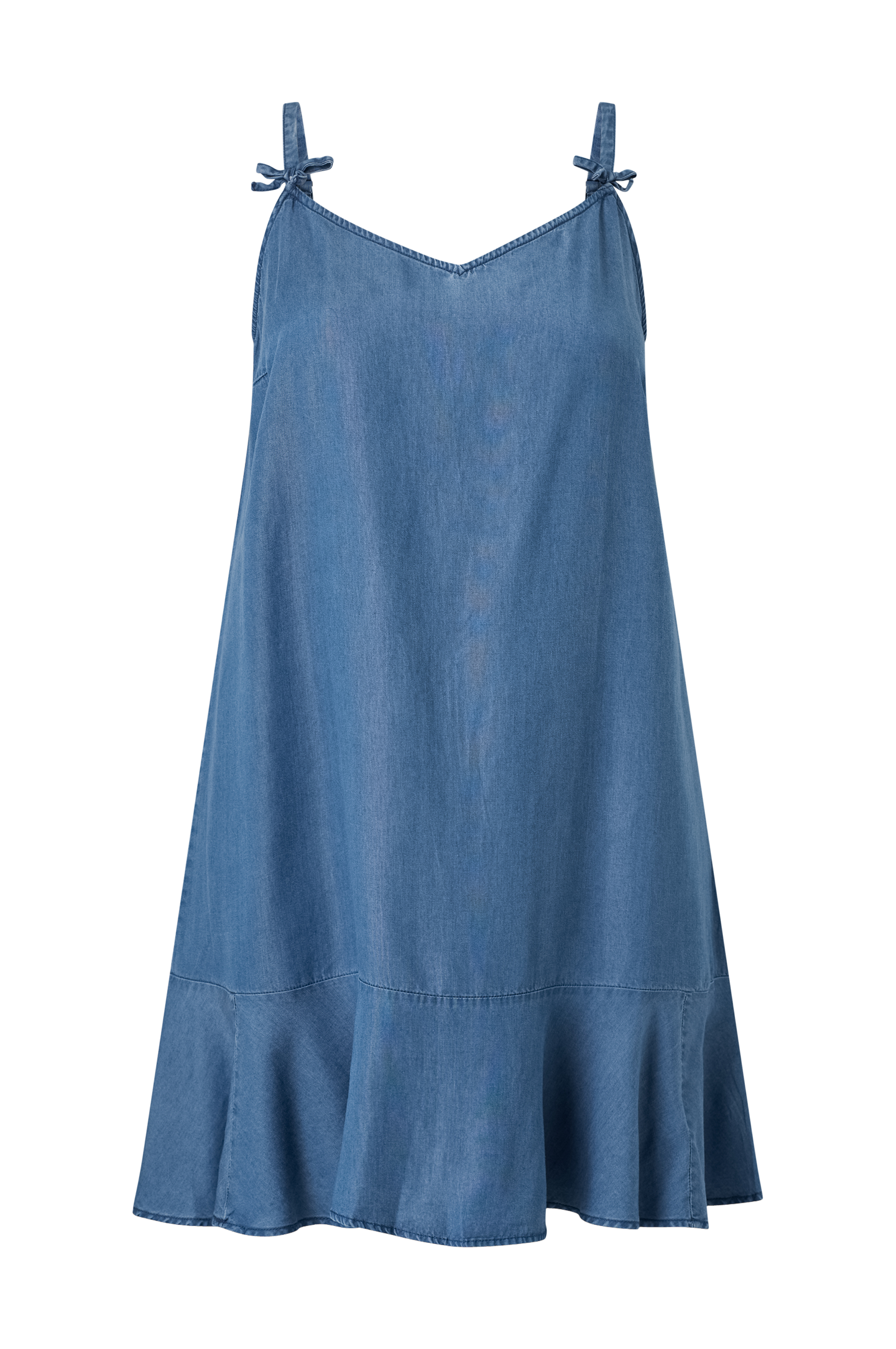 • Kjole med volang i nedre kant• Denim i myk Tencel lycocell• Tynne, justerbare skulderstropper• V-formet hals• Pluss-størrelser• Lengde: 92 cm i størrelse S