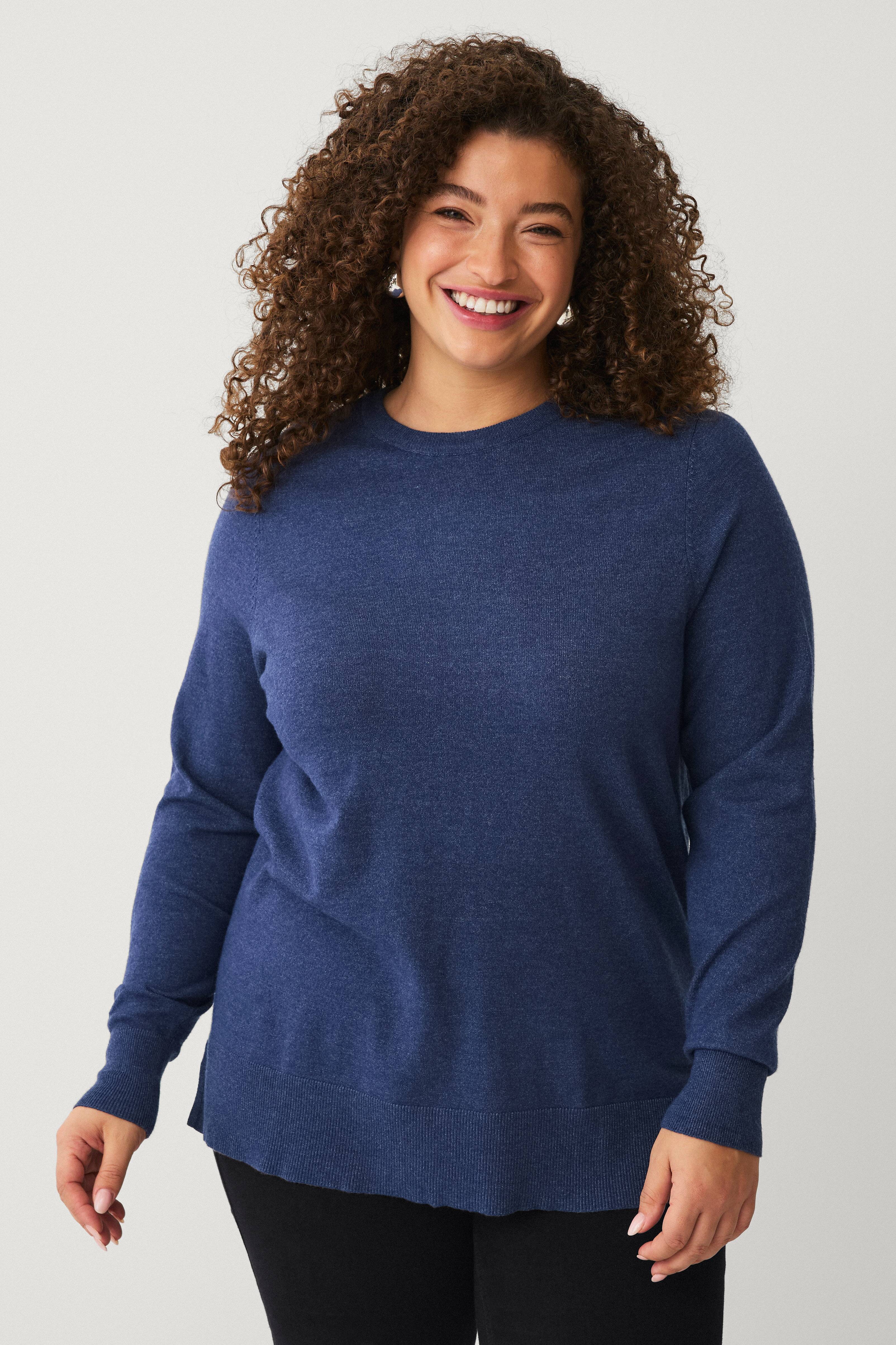 • Finstrikket genser i myk viskosemiks• Rund hals• Splitt i sidene• Ribbet mansjetter i ermeslutten og på bunnen• Plusstørrelser