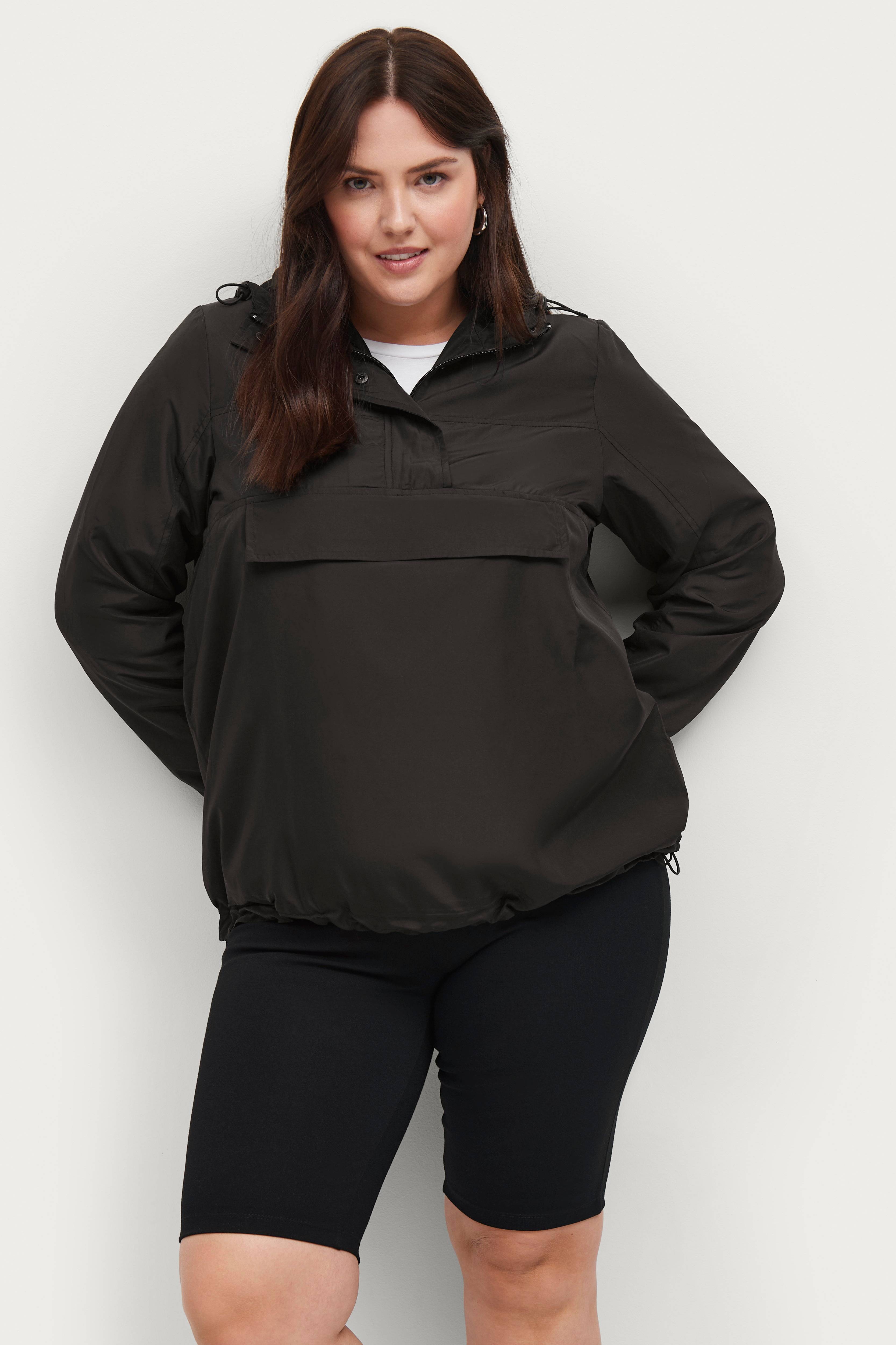 • Tynn anorakk• Glidelås oppover foran• Hette med snøring• Stor brystlomme• Snøring i nedre kant• Plusstørrelser• Lengde: 71 cm i størrelse S