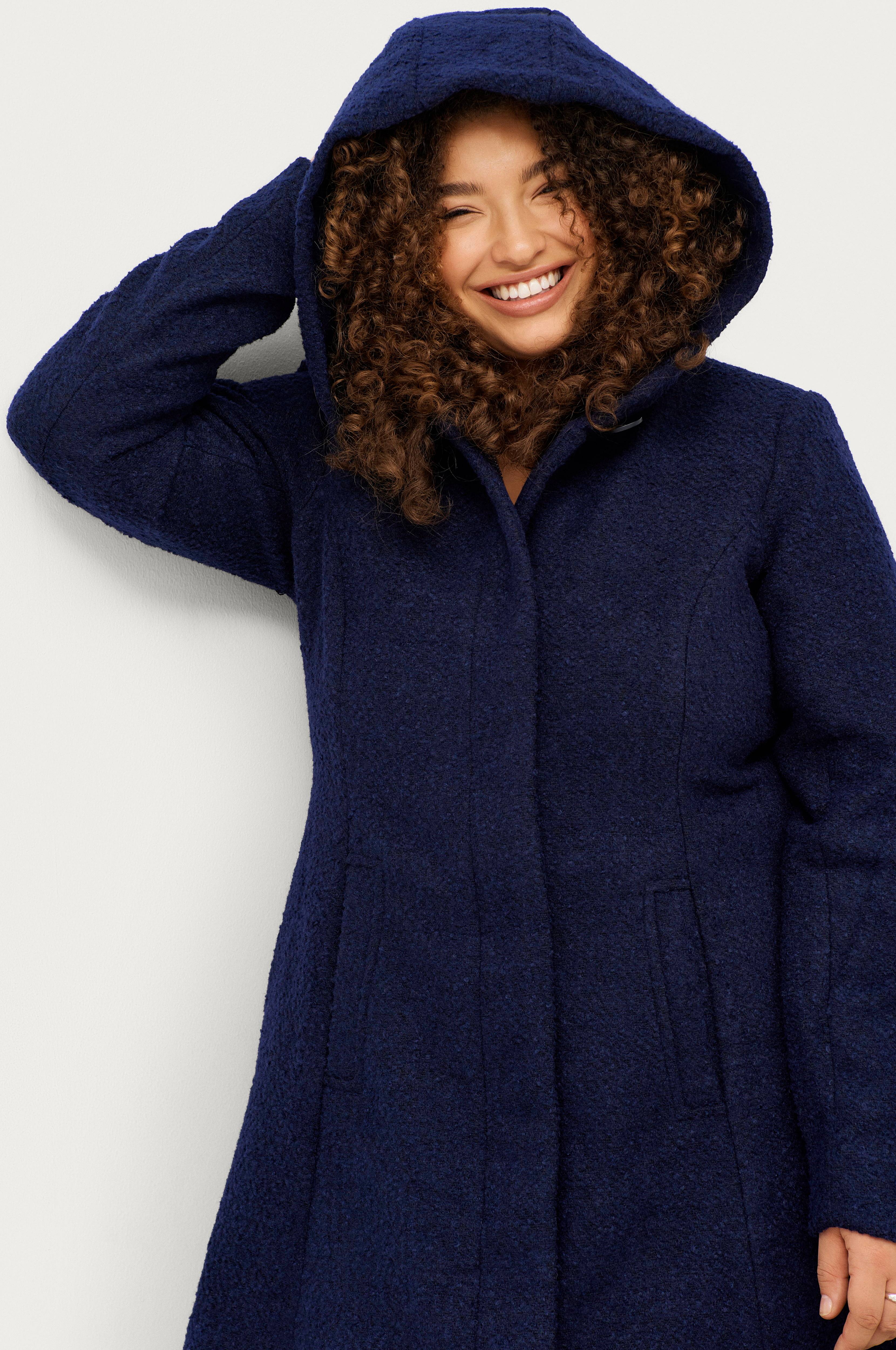 • Kåpe i bouclé• Feminin a-linjeform• Fast hette• Skjult to-veis glidelås• Klafflomme med trykknapper• Sidelommer• En innerlomme med knapp• Plusstørrelser• Lengde: 92 cm i størrelse S