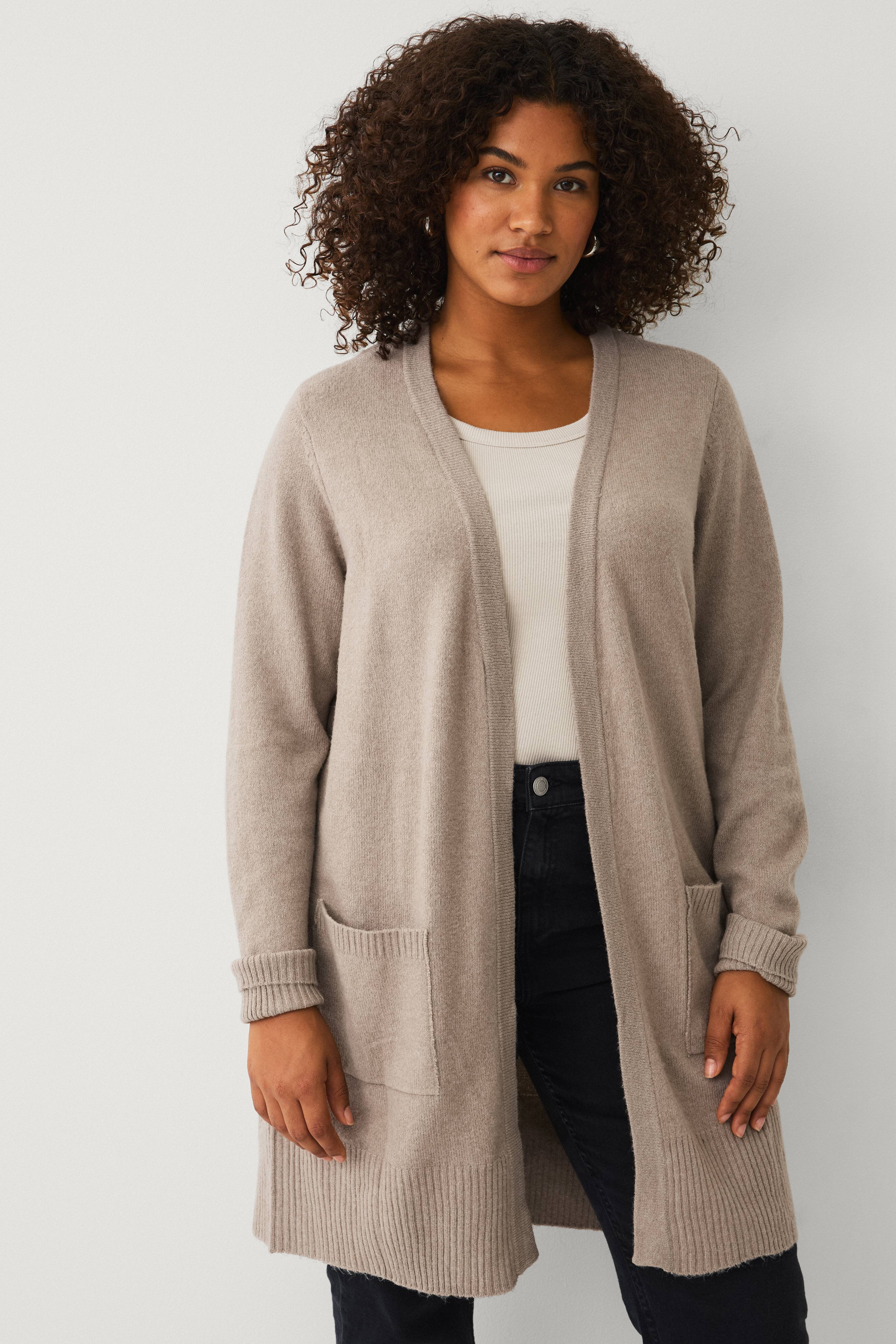 • Plusstørrelser• Lang, finstrikket modell• To lommer• Bred ribbestrikk på bunnen og i ermeslutten• Produktet inneholder gjenvunnet materiale som er brukt for å redusere mengden avfall, samtidig som det ikke er brukt nye ressurser.