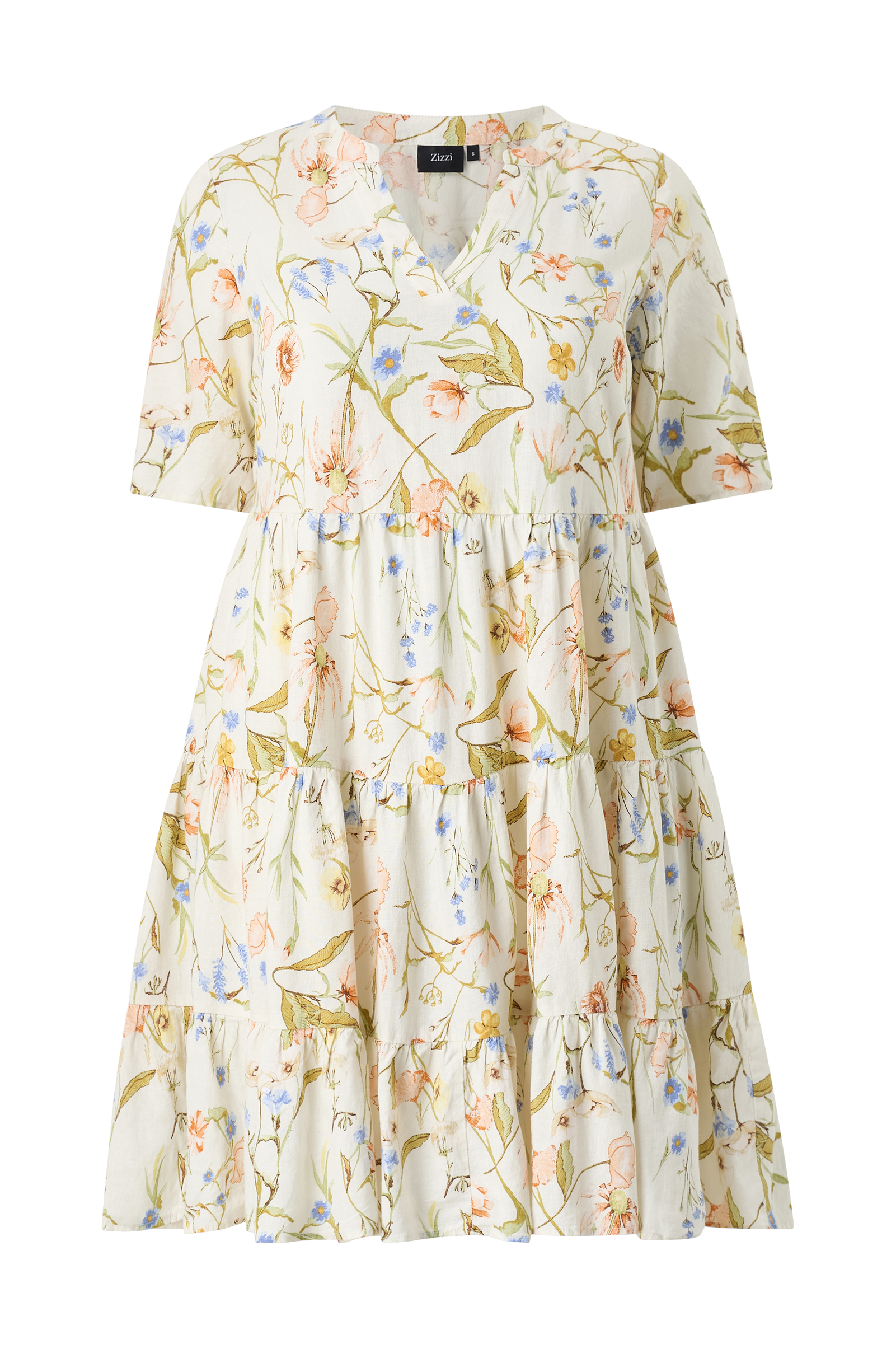 • Kjole i linmiks• V-formet hals• Halvlange ermer• Utsvingt volangskjørt• Pluss-størrelser• Lengde: 100 cm i størrelse S