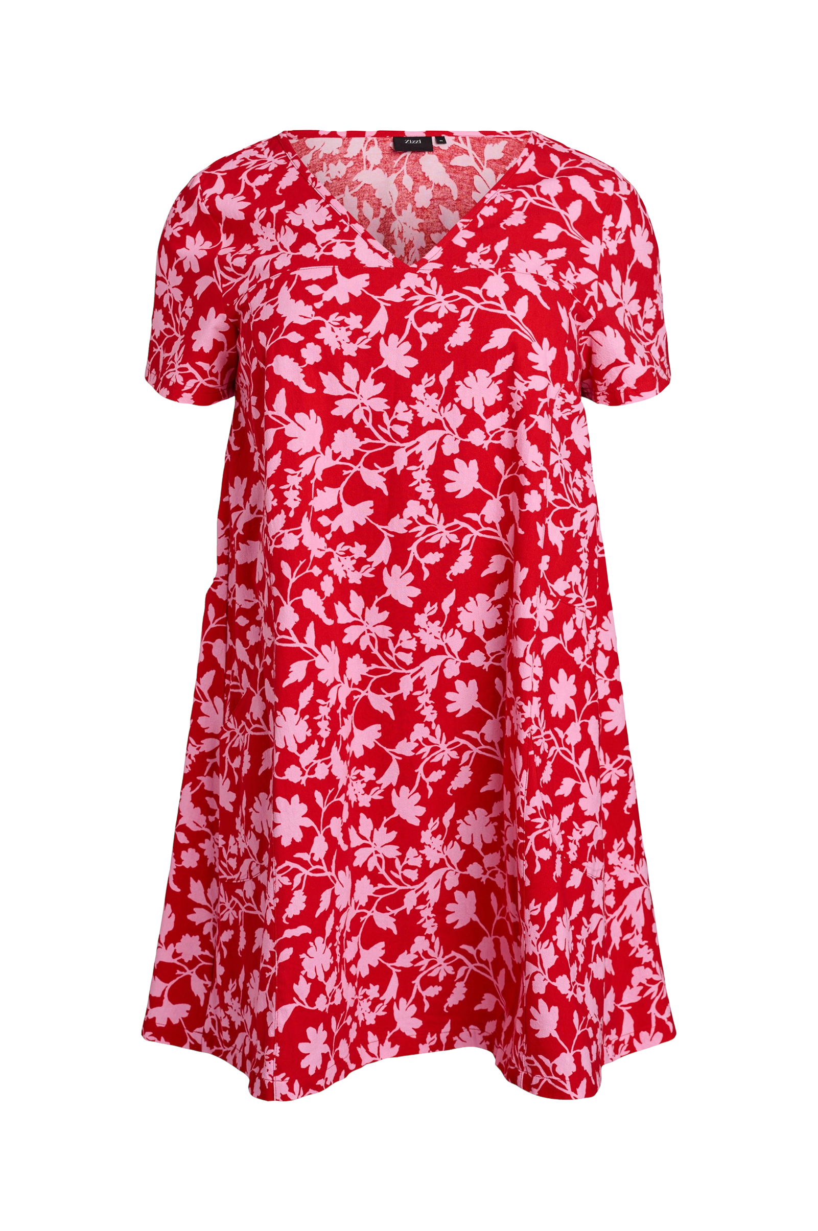 • Kjole i bomull med trykket mønster• Løs a-linjeform• V-formet hals• To lommer• Plusstørrelser• Lengde: 98 cm i størrelse 42/44